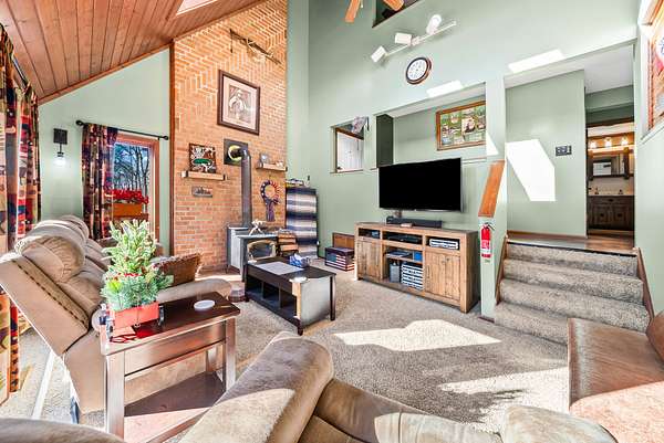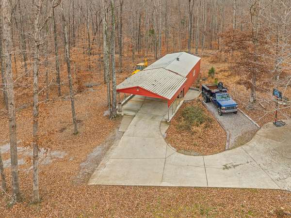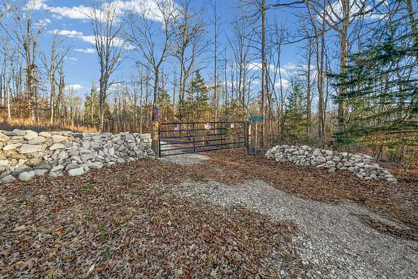 Escape to your own private sanctuary with this stunning 3-bedroom, 2-bathroom "cabin in the woods" situated on 52 breathtaking acres. Offering the ultimate in seclusion and serenity, the property features a secure gated entrance along with 11 cleared acres adorned with a dozen mature shade trees, creating a setting perfectly suited for horses or small-scale farming. The remaining acreage is a nature lover's dream, filled with logging trails, frequent sightings of deer and hawks, and clearly marked property lines for peace of mind. The home is thoughtfully designed for effortless living, featuring a full basement and an in-home elevator for easy access between levels. A unique pass-through cabinet in the living room allows you to move firewood directly from the basement to the hearth, ensuring cozy evenings by the fire are always convenient. This turn-key residence comes complete with all appliances, including the washer and dryer. Outside, the infrastructure is unmatched, boasting a detached 4-car garage with an attached carport, a massive parking pad for guests or equipment, and a dedicated storage shed located directly off the garage. Whether you are exploring your private forest or enjoying the quiet beauty of your cleared pastures, this estate offers a rare blend of functional luxury and rugged natural beauty.