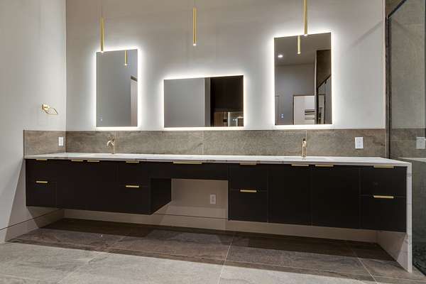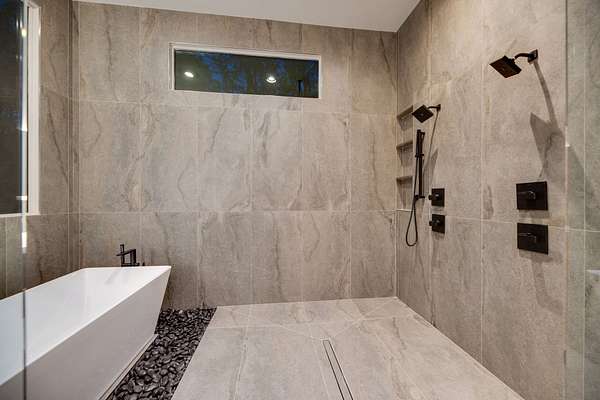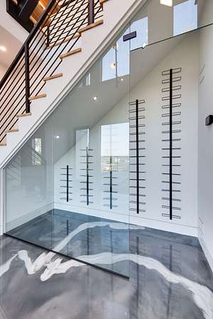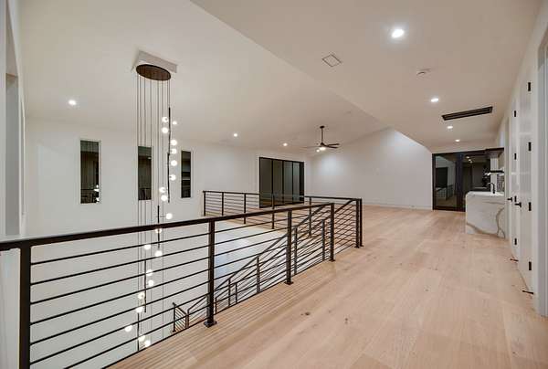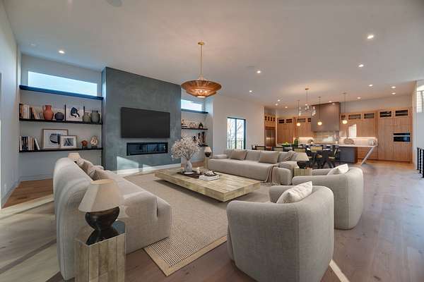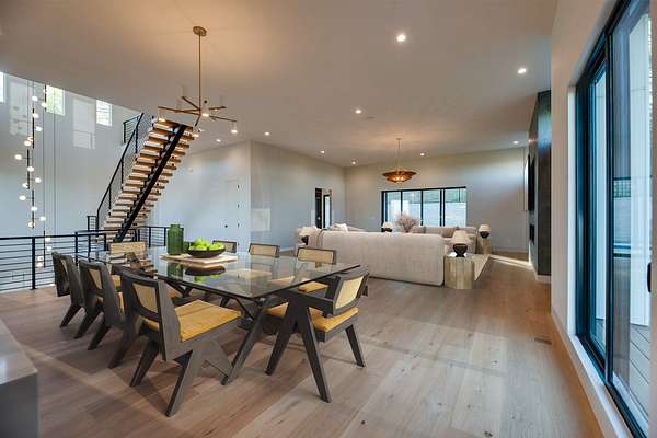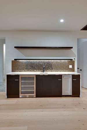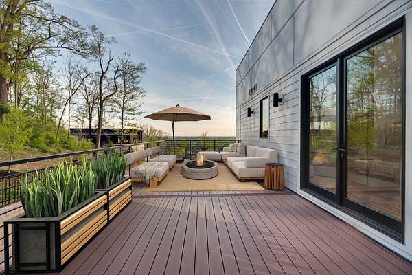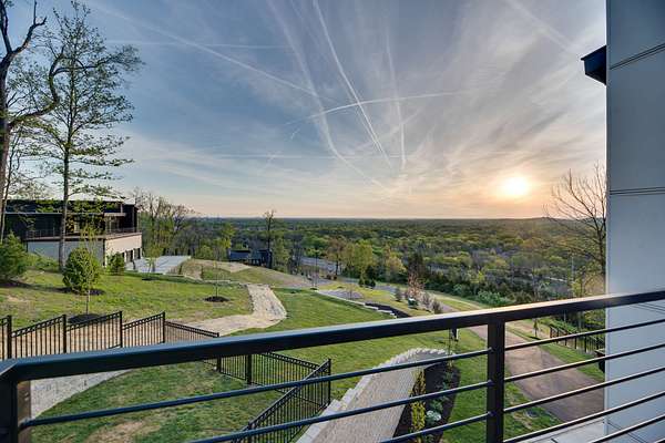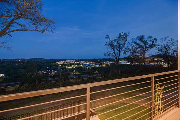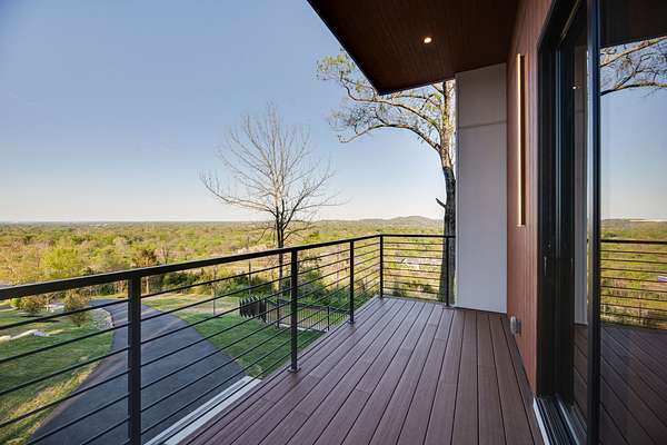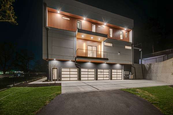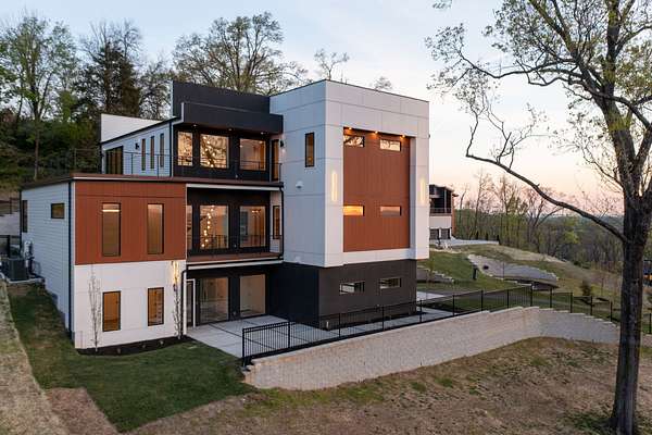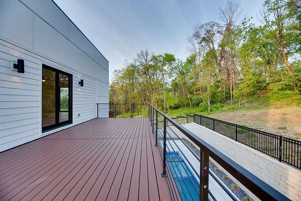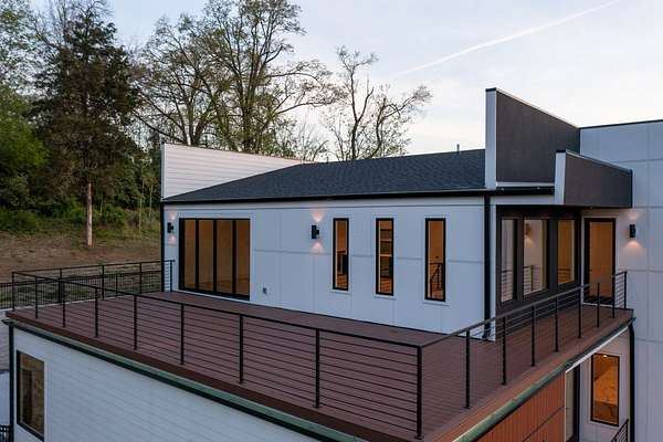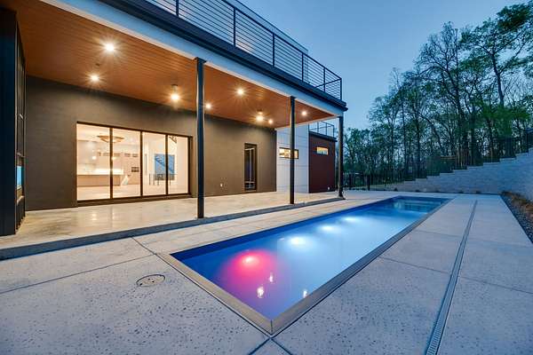 Located within Oakhaven, a private enclave in Oak Hill, this modern residence sits on more than two wooded acres, offering a rare combination of architectural design, privacy, and natural surroundings. Each home within the community is individually gated, creating an added sense of security and seclusion while remaining just minutes from I-65 and the shopping, dining, and daily conveniences of Brentwood and Green Hills. Built by Urban Development Group, the home reflects a consistent standard of modern luxury and thoughtful execution throughout. Spanning 6,173 square feet across three levels, the residence features five bedrooms, five and a half baths, and a four car garage with a built-in dumbwaiter providing direct access to the pantry for everyday convenience. The main living spaces center around a spacious great room with fireplace, custom floating shelving, and a 12 foot sliding pocket door that opens to the pool, outdoor living area, and recessed firepit lounge. The dining area flows naturally into the kitchen, while a floating grilling deck extends directly off the kitchen, creating an additional outdoor entertaining space. The kitchen is anchored by a 15 foot island with dual dishwashers and sink, along with a walk-in pantry with garage access via dumbwaiter, concealed appliance storage, and a 48 inch Miele range with double oven, microwave, and warming drawer. The primary suite serves as a private retreat, featuring a spa-style bath with a two person sauna, dual vanities, makeup station, LED-lit mirrors, luxury multi-head shower, and oversized soaking tub. A private balcony extends the suite outdoors, while the custom closet includes a hidden safe and direct access to the laundry room. Upstairs, a large bonus room opens to two separate decks overlooking the pool and wooded surroundings. Additional spaces include an office or craft room, a gym or flex room with dry bar and beverage refrigeration, and a climate controlled glass wine room.