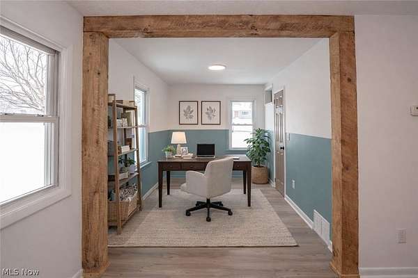 Space, style, and versatility all in one with this freshly updated ranch living on over 4 private acres! This thoughtfully redesigned home features a fun, split-bedroom layout with two bedrooms tucked off the living room and two more near the kitchen, offering flexibility for guests, work-from-home, or multi-generational living. The entire interior has been refreshed with new LVT flooring, updated finishes, and a bright, airy feel throughout. The living room includes a cozy sitting area that works perfectly as a recreational nook, play space or home office. The kitchen shines with select stainless steel appliances, a breakfast bar, and great flow into the dining area accented by a playful statement light fixture. The primary bedroom offers a private en-suite bath, creating a comfortable retreat, and an additional full bath serves the remaining 3 bedrooms. Outside, enjoy peaceful views, room to roam, and a detached oversized two-car garage-ideal for hobbies, storage, or extra toys. A newer roof, walk-out basement with ample storage, and multiple entry points add to the home's convenience and appeal. A rare combination of land, updates, and layout-this one is ready to be enjoyed.
