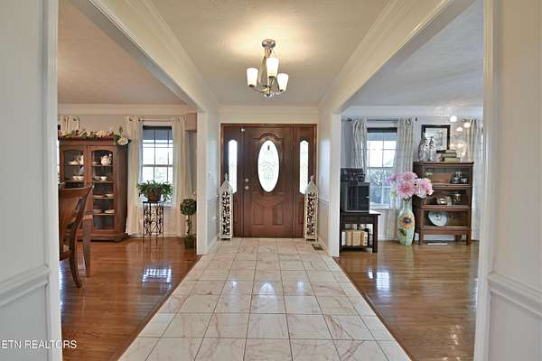 Welcome to your own private retreat--where comfort, space, and serenity come together in perfect harmony. Nestled on 5 picturesque acres with a tranquil pond and tucked away on a quiet dead-end street in Maryville, this stunning country estate offers the peace of rural living with refined, modern updates throughout. The grounds feature a delightful assortment of established fruit trees along with beautifully maintained lavender plantings, creating a scenic and aromatic setting that can be enjoyed throughout the seasons. This beautifully maintained full-brick Cape Cod home features 4 spacious bedrooms, 3.5 baths, and over 3,700 square feet of thoughtfully designed living space. The heart of the home is the updated eat-in kitchen, complete with a large island, stainless steel appliances, gleaming granite countertops, and a stylish tile backsplash--perfect for both everyday living and entertaining. A formal dining room adds an elegant touch for gatherings and special occasions. The expansive main-level primary suite provides a luxurious and private escape, while the inviting great room--with its cozy gas fireplace--opens to views of a stunning 20x40 in-ground pool, creating a true backyard oasis. Upstairs, you'll find a second primary suite along with two additional bedrooms connected by a convenient Jack-and-Jill bathroom, offering comfort and flexibility for family or guests. A new upstairs air conditioning unit adds improved comfort and efficiency. Car enthusiasts and hobbyists will appreciate the impressive 2,400 sq ft heated and cooled block garage, complete with a 4-post car hoist and half bath. Additional storage and workspace are provided by a 20x20 block garage, as well as a 30x30 metal building, offering exceptional versatility for vehicles, equipment, or recreational toys. A home generator adds peace of mind and year-round reliability. Outdoors, the property continues to impress with its thoughtfully cultivated landscape, including productive fruit trees and fragrant lavender that enhance both the beauty and usability of the land. The property is also home to active honey bee hives, as the current owners harvest honey onsite. Buyers should be aware that bees are present and exercise appropriate caution when touring or using the outdoor spaces. This exceptional property is more than just a home--it's a lifestyle. A rare opportunity to own a slice of peaceful paradise with room to live, relax, and enjoy. Truly a must-see!