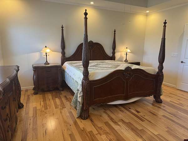 Location! Just 5 minutes from Baxter Regional Hospital, this exceptional Custom Home on 3.75 ac m/l combines the charm of country living with the convenience of city amenities, nestled in an upscale Mountain Home neighborhood. Spacious 2800 sq ft. one level with an open-concept floor plan, 9' ceilings & hardwood hickory floors. 3 large bedrooms, 2 full bathrooms w/ custom tile showers, extra storage, and a convenient half bath. Cook up your culinary masterpieces in a well-designed kitchen w/ large island, built-in appliances, lower cabinets that are all drawers for ease of access. The office is located just off the foyer, and a 20' sunroom ideal for hobbies, plants, or a cozy music room. This property is perfect for a growing family or those who love to entertain. Plenty of parking, covered outdoor grilling area, fenced garden area, well and septic, large concrete covered front porch, 30 x 40 shop, 24 x 40 RV port, 18 x 28 port, and 2 car attached garage with lots of built in storage.