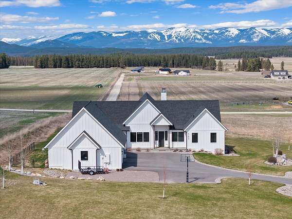 Get ready to fall in love with this gorgeous 5-bedroom, 4.5-bath dream home with 2 bonus rooms and just under 5,000 sq ft of stylish, high-end living space plus a large 1,500 sq ft garage! Step inside and prepare to be wowed by the heart of the home with a beautiful kitchen with top-of-the-line appliances and a huge center island. Sleek finishes throughout, it's the perfect place to cook, gather, and celebrate. The open-concept layout flows effortlessly into the spacious living and dining areas, all drenched in natural light. Located on a rare 2.9 acre lot in the highly sought-after Harvest View Subdivision, you'll enjoy the perfect mix of privacy and comfort, with breathtaking 360 views that surround you with mountains and endless horizons in every direction. Tucked perfectly between Kalispell and Whitefish you'll enjoy peace, space, and stunning scenery without giving up convenience.