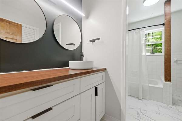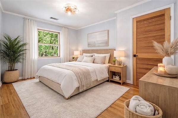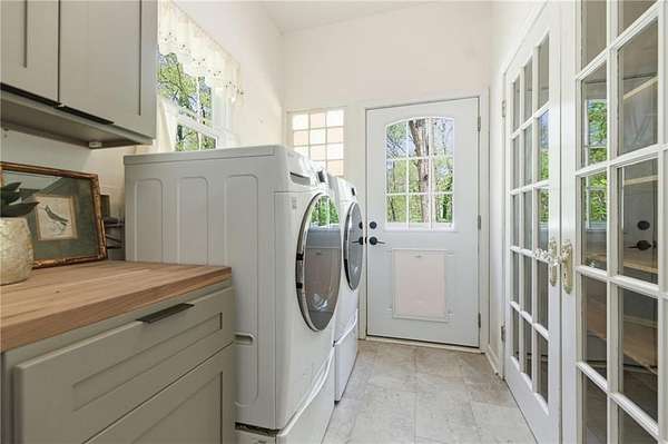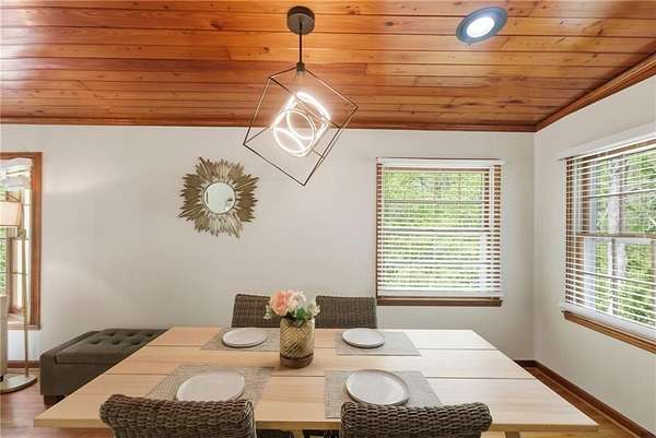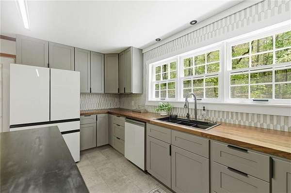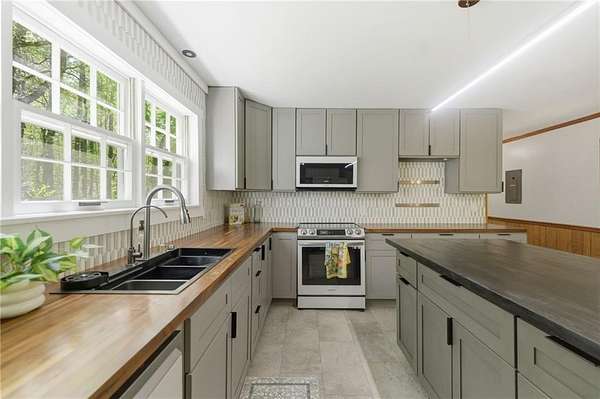 Welcome to 5430 Bethlehem Road! Located in the heart of Fairburn on 3 beautiful acres in Fulton County. A rare opportunity to own land in a prime location! As you enter the home you will feel a warm ambiance from all the character, natural light, and charm. Step inside and discover the heart of the home - A beautiful Chef's kitchen that features an oversized island, breakfast bar, top of the line appliances and panoramic views of the outdoors! Stunning tile backsplash fills the walls and wraps around the ceiling-height custom cabinetry with slide-out shelving. Right off the kitchen is the laundry room that comes complete with a washer/dryer, more cabinet space and storage, and beautiful French doors that lead you straight to the backyard. Gorgeous oak trees, fruit trees and blackberry bushes are right off your doorstep. Primary bedroom is located on the Main level - and feels like a real retreat with the oversized window and beautiful view of the backyard! Also located on the main floor is the newly remodeled bathroom, complete with designer tile and modern finishes. Upstairs has two generously sized bedrooms with walk-in closets, secondary bathroom, and a flexible bonus room that is perfect for a fourth bedroom, media room, or a private home office. Exterior features include: a spacious and private outdoor sanctuary that has a creek, walking trails, fruit trees, fenced-in dog run, and outdoor storage shed. Whether you are sipping morning coffee on the front porch listening to the birds, or enjoying time around the fire pit under the cafe lights, you will love all of the nature this property brings. With No HOA, you have the total freedom to expand, build a pool, or start your own homestead. Other updates include: New HVAC system that comes with a lifetime transferable warranty, Water for Life home filtration system, Foundation enhanced by Aquaguard, Septic inspected and cleaned 2025. This is a property you will never want to leave. Schedule your showing today!