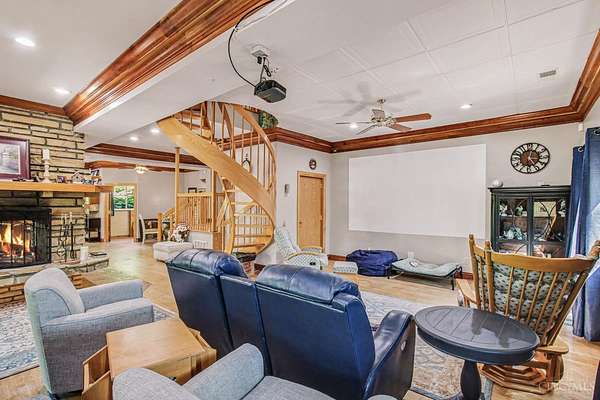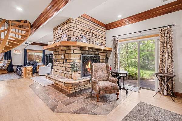 Exceptionally Unique No-Step Lifestyle Filled with Updates Featuring Impressive Finished Lower Level, Stylish Kitchen, Two Primary Suites, Elevator and a Picturesque 8.4 Acres of Land in the Milford School District! Kitchen Features Custom Cabinets, Pantry, Subway Tile Backsplash and Walk-out to Sunroom. Spacious Primary Suite Offers Walk-out to Tiered Deck, Walk-in Closet, Wood Burning Fireplace and Designer Bath with Soaking Tub and Custom Double Shower. Second Primary Bedroom has Private Bath with Accessible Shower. Finished Lower Level has Media Room, Rec Room with Wet Bar, Double Sided Fireplace, Den and Multiple Walk-outs to Covered Patio. Detached Garage with Workshop, Barn with Loft, Shed, Coy Pond and Fenced-in Garden. Scenic Views of Wooded Land and Wildlife. Fully Accessible Home Just 3.7 Miles to Downtown Milford Nationally Acclaimed Dining and Shops.