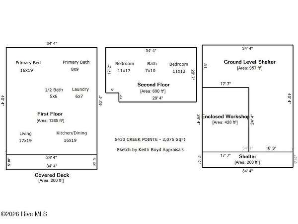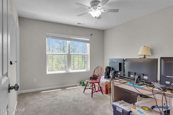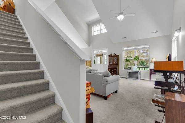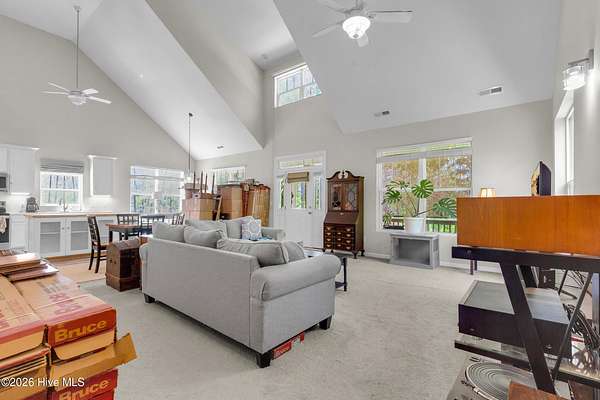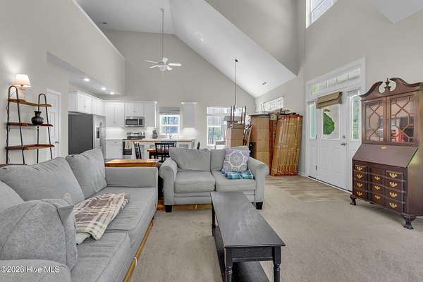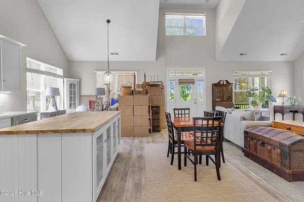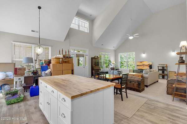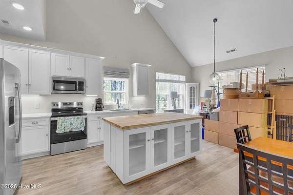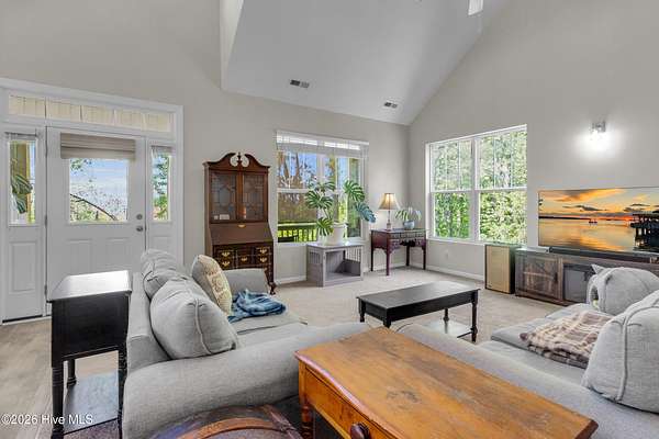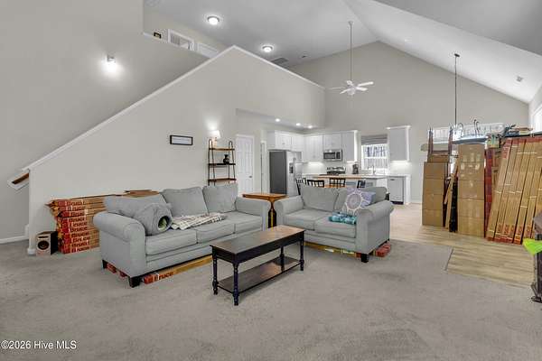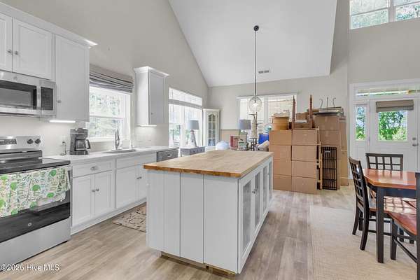 Nestled on approximately 13 scenic acres, this inviting creek-front property offers a peaceful setting with room to spread out and enjoy the beauty of Eastern North Carolina. Built in 2020 and offering over 2,000 square feet, this thoughtfully designed home blends comfort, functionality, and a connection to the outdoors. A welcoming covered porch sets the tone as you step inside to a bright and airy interior, where vaulted ceilings and abundant windows fill the living spaces with natural light. The open-concept layout seamlessly connects the living room, dining area, and kitchen, creating an ideal space for both everyday living and gathering. The kitchen features white cabinetry, stainless steel appliances, a center island, and generous workspace, all designed with both style and convenience in mind. The spacious primary suite is located on the main floor and offers a private retreat with an ensuite bath. Also on the main level, you'll find a laundry room and an additional full bathroom for added ease. Upstairs, two additional bedrooms and a full bath provide flexible space for a variety of needs. The ground level includes an enclosed workshop and storage area, offering endless possibilities for hobbies, projects, or additional storage. The expansive acreage provides ample room for outdoor enjoyment, recreation, and embracing the surrounding natural beauty. Conveniently located near Lee's Landing Boating Access Area, this property offers easy access to boating and outdoor recreation while still providing the privacy and tranquility of a larger homesite. With creek-front charm, modern features, and expansive acreage, this unique property offers a rare opportunity to enjoy space, comfort, and coastal living all in one.
