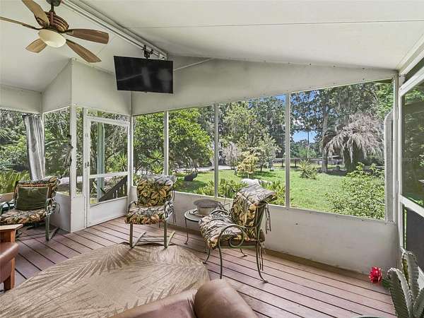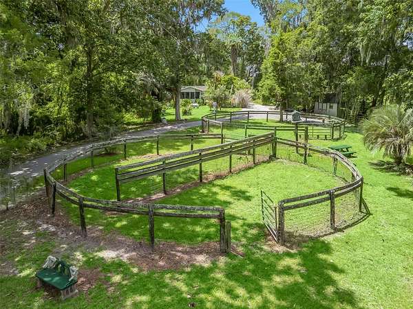 This estate sits on 5.28 acres and is one of the highest elevation points on the road. The property is conveniently located just 8 minutes from the World Equestrian Center as well as close proximity to dining and shopping options. It presents a stunning, serene environment with a three bed/two bath home and a secluded setting. A picturesque covered bridge adds a touch of charm and character to the landscape. Two wells one regular size and one large for equestrian needs are present as well as two outside sheds for additional storage. Two distinctive round pins provide unique architectural elements and suited for equestrian needs. Four barns are also on the property. The hidden nature of the property is like being in your own private park, insuring privacy and tranquility. Various types of trees surround the property, including oak, cedar, and a couple of fruit trees. The overall impression is rustic elegance and natural beauty, which would be ideal for those seeking a peaceful retreat and place to call home.