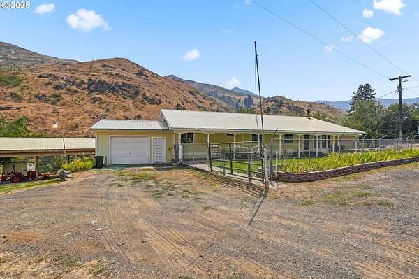Charming countryside retreat with a vintage 1984 manufactured home nestled on a spacious 2.68-acre lot. This cozy abode features an attached double car garage, providing convenient parking and storage space for vehicles and belongings. Surrounded by nature's bounty, the property boasts a delightful pear tree, apple tree, and grapevines, offering a taste of the orchard life. A tranquil creek meanders through the backyard, providing a serene spot to relax on hot summer days and adding to the property's rustic appeal.Outdoor enthusiasts will appreciate the expansive shop on the premises, perfect for storing and tinkering with all your outdoor gear and toys. Additionally, the property offers ample room for cultivating a garden, allowing you to indulge your green thumb and grow your favorite fruits, vegetables, and flowers. Also entire interior has been painted. Call your agent today for a showing!