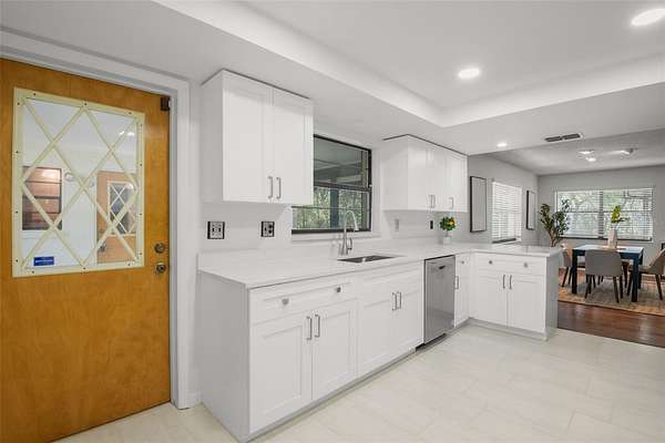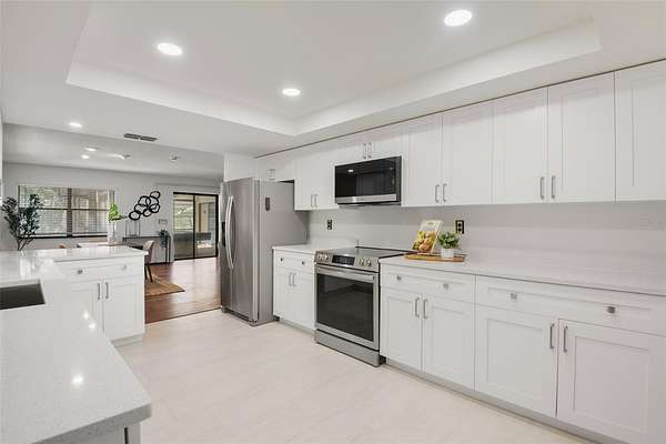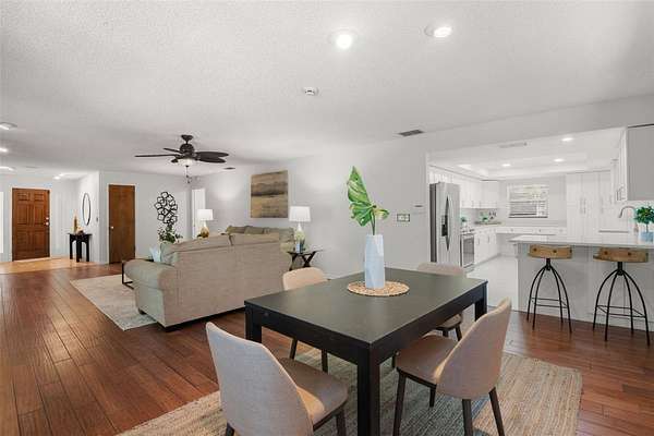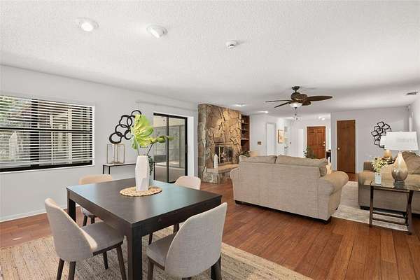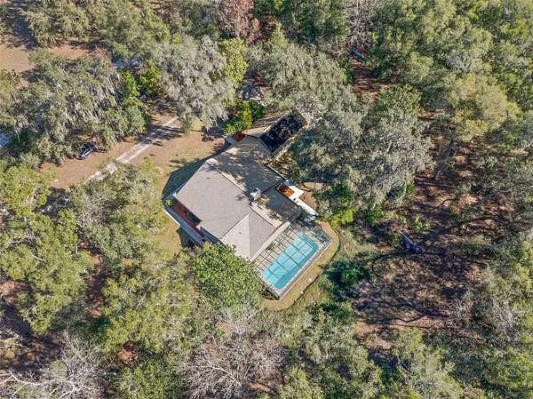 Your opportunity to be in the Spring Lake area of Brooksville!! Discover your own secluded paradise on 10 pristine acres adorned with majestic mature oak trees. This thoughtfully updated, freshly painted, 4-bedroom, 2-bathroom pool home offers the perfect blend of modern comfort and peaceful country living. The heart of the home features a completely renovated kitchen showcasing crisp white shaker cabinets, elegant quartz countertops, and stainless steel appliances. The open living and dining area boasts rich engineered hardwood floors and a cozy wood-burning fireplace--ideal for gatherings or quiet evenings at home. The master suite provides a private retreat with brand-new carpeting and a clean bathroom featuring a new vanity. The separate family room, also appointed with new carpet, offers additional living space for relaxation or entertainment. Both the living room and family room feature sliding glass doors that open to a spacious Florida room, leading to your own screened-in pool--perfect for year-round outdoor enjoyment. Three guest bedrooms feature beautiful engineered hardwood floors, while a 406-square-foot in-law apartment provides complete independence with its own full kitchen, bathroom, and bedroom--excellent for extended family or rental income potential. Additional features include an oversized 3-car garage with walkable storage on top and a substantial 20'x24' metal barn at the rear of the property, offering endless possibilities for storage, workshop space, or hobbies. 2021 Roof. This rare offering combines privacy, space, and modern updates in one exceptional package. Within minutes of Downtown Brooksville. Schedule your private showing today!