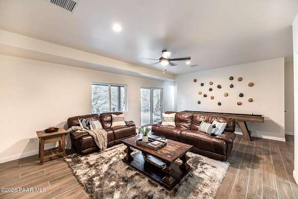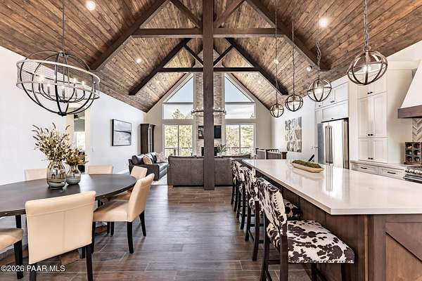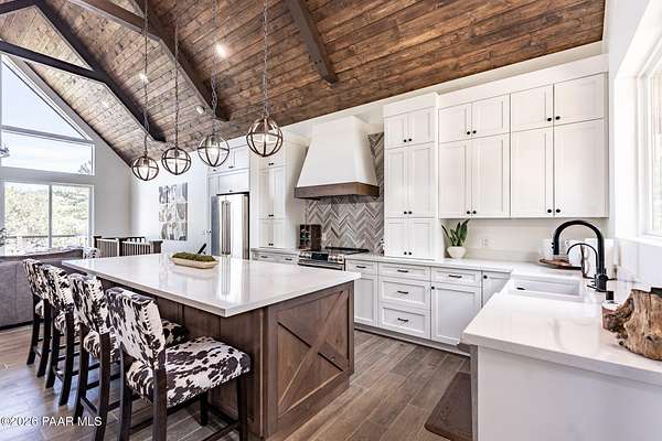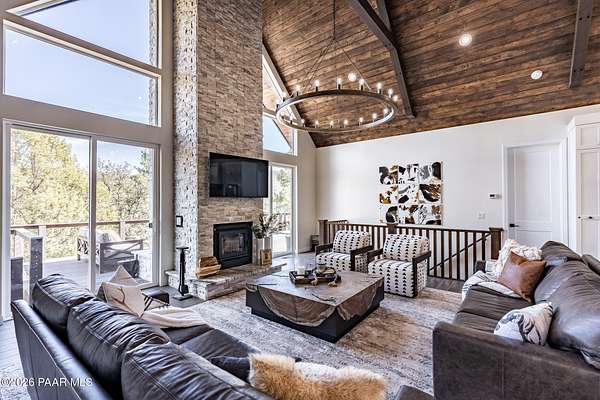 Set against a backdrop of endless mountain horizons, this exceptional Prescott retreat offers truly remarkable million-dollar views in every direction. Nestled among mature pines on a private hillside, the home seamlessly blends elevated design with the serenity of Northern Arizona living.Expansive windows frame the landscape, while generous living spaces and thoughtfully designed indoor-outdoor areas invite relaxation and connection. Currently operating as a highly rated short-term rental, the property offers flexibility as a luxury getaway, income-producing investment, or full-time residence.Privacy, scenery, and proximity to downtown Prescott combine to create a rare opportunity in one of the area's most sought-after settings.
