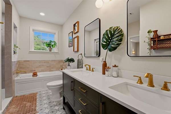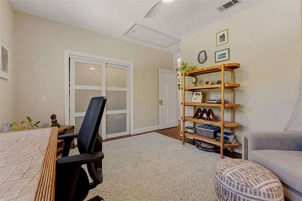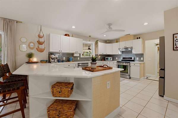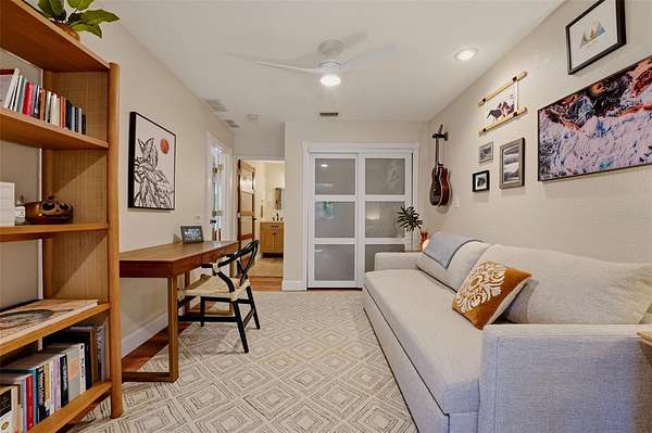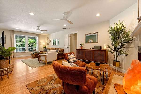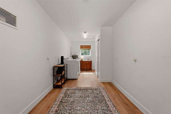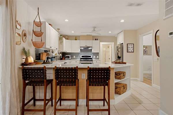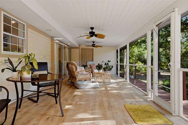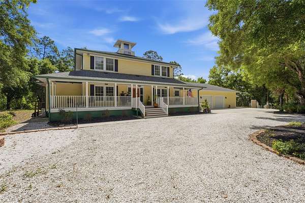 Set behind a private gate and framed by nearly 4 acres of lush landscape, this one-of-a-kind farmhouse estate offers space, character, and versatility rarely found in today’s market. Pulling into the circular driveway, the setting feels intentional with mature oak and palm trees, new fruit trees, and natural wooded buffers which create a sense of quiet separation while being just minutes away from everyday conveniences and Gulf beaches. The home itself immediately stands out with its expansive wrap-around front porch, an inviting extension of the living space and the perfect place to unwind, entertain, or simply take in the peaceful surroundings. Thoughtfully designed and meticulously maintained, this residence offers over 3,200 square feet under air with 4 bedrooms, 4 full baths, and a flexible Florida room that easily functions as a 5th bedroom, office, or private guest retreat. Inside, the home reflects a curated, relaxed aesthetic with warm textures, natural tones, and modern finishes. The main living area is spacious and comfortable, anchored by a wood-burning fireplace and enhanced by new engineered hardwood flooring. Sliders open to the screened lanai, seamlessly connecting indoor and outdoor living while overlooking the private backyard with a hammock area and fire pit, ideal for evenings under the stars. The kitchen has been tastefully updated with quartz countertops, tiled backsplash, newer appliances, and a generously sized breakfast bar perfect for gathering. Off the kitchen is a highly functional utility wing featuring a second refrigerator, a separate 9x9 pantry room complete with built-in shelving, cabinetry, and a deep freezer. The large laundry room (26x7) provides ample space for additional storage. The first floor layout includes a private bedroom suite with updated bath and French door access to the Florida room, offering flexibility for multigenerational living or guests. Upstairs, the primary suite provides a quiet retreat with two walk-in closets (one currently styled as a dressing room) and a beautifully updated bath featuring dual vanities and an effervescent soaking tub. Two more bedrooms and another updated full bath with a deep soaking tub and shower complete the upper level. All upstairs bedrooms feature oak wood flooring, adding warmth and continuity throughout. Beyond the main residence, the property continues to deliver. The expansive yard has hidden trails beneath a canopy of oaks and cleared areas for gathering. A detached 725 square foot outbuilding with electric offers endless possibilities, ideal for a workshop, studio, or hobby space. The oversized garage accommodates two vehicles with additional room for storage, tools, or recreational equipment. Additional features include a whole-house reverse osmosis water system (2024), hot water heater (2021), upstairs AC (2020), and a brand-new downstairs AC (2025). The property is fully fenced, zoned agricultural, and allows for horses, providing flexibility for a variety of lifestyles. Despite its private, tucked-away feel, this location remains highly accessible. Approximately 25 minutes to Gulf beaches and convenient to shopping, dining, and North Port amenities. Not located in a flood zone. Extensively improved with nearly $150,000 in upgrades, this is a rare opportunity to own a property that offers both function and personality, where indoor comfort meets outdoor freedom, and every space has been designed to be lived in and enjoyed.