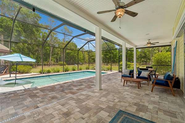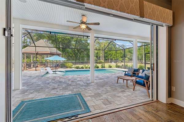 This stunning 5-bedroom, 3.5-bath home sitting on nearly 2 private acres is the kind of property that stops people mid-scroll — and trust me, once you see it in person, you're not going to want to leave. With 3,630 square feet of beautifully designed, open-concept living space, everything just flows — from the gorgeous engineered hardwood floors that run throughout the entire home, to the spacious kitchen loaded with granite countertops, ceramic tile flooring, and stunning full overlay maple cabinets that make the whole space look like it came straight out of a magazine. And the fireplace? That hand-crafted pine mantle was made from an actual tree that grew right here on this property — that's the kind of custom detail that makes a house feel like a home. Now let's talk about the outside, because this is where it really gets exciting — step out back and you're greeted by a brand new heated saltwater pool with a beautiful screen enclosure, a gorgeous gazebo with an attached pergola perfect for entertaining, and a massive yard that stretches out with zero rear neighbors, giving you the kind of peace and privacy that's almost impossible to find. The whole-home surround sound system runs both indoors and outdoors, so whether you're cooking dinner or floating in the pool, the music is always right there with you. And the owners have genuinely thought of everything — plantation shutters on the windows, UV film on every window and door to protect your home and keep energy costs down, Rain Control aluminum gutters, a full security camera system with DVR so you always know what's going on, and a handy storage shed for all the extras. This home is dialed in, move-in ready, and somehow still tucked into a quiet, peaceful neighborhood that's just minutes from top-rated schools, amazing restaurants, and all the shopping you could ever need. Honestly? This one has it all! Schedule your private showing today!