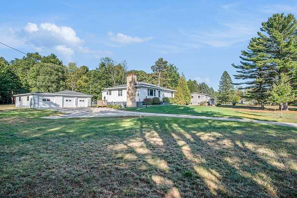 BACK on the Market on NOV 1, 2025 after the tenant moves out - 3-Bedroom Ranch on Nearly 2 Acres, Minutes from Downtown Ludington! This move-in ready 3-bedroom, 1-bath ranch offers the perfect mix of country living and close-to-town convenience. Step in through the mudroom to the updated kitchen with snack bar, dining area, and plenty of counter space. The main floor features hardwood floors, a spacious living room with picture window and fireplace, three bedrooms, and a full bath. The walkout basement extends your living space with two finished rooms with newer carpet, a laundry area, storage, and direct access to the outdoors. Outside, enjoy a detached 4-car garage with handy drive-through doors, a covered back patio, storage sheds, and a large fenced-in yard. Sitting back from the road on nearly 2 acres, this home offers privacy, elbow room, and a park-like feel. Just minutes from schools, Stearns Park Beach, Lake Michigan, Lincoln Lake, Ludington State Park, and more