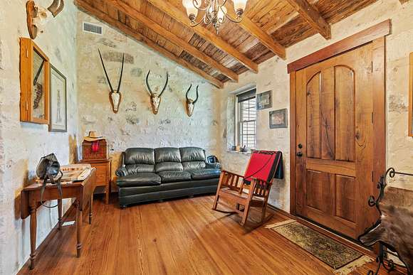 Nestled between Kerrville and Fredericksburg, this charming ranchette spans 28.5 acres and offers a unique blend of history and modern comfort. The property is easily accessible, located just half a mile down Alfred Henke Road. The main home boasts 2,500 square feet of living space with 3 bedrooms and 2 full bathrooms. At its heart lies a historic 2-room stone house built in 1875, with its stone repointed in 2009 and original floors, believed to have been installed in 1900, beautifully refinished. This house was owned by a single family from 1875 to 2008. In 2010, an extension was added to preserve the original homes aesthetic while incorporating energy-efficient SIP construction. Additional structures on the property include a guest house, an insulated 30x50 shop, an insulated tack room with window A/C, and a smokehouse/storage room. The outdoor kitchen is perfect for entertaining, featuring lighting, fans, and rustic cabinets crafted from recycled wood from the original house. The land primarily consists of pasture, adorned with majestic live oaks around the homestead and a 90+ year-old crepe myrtle tree. Water is supplied by a well. This is a fantastic opportunity to own a piece of history in one of the fastest-growing areas in the USA.