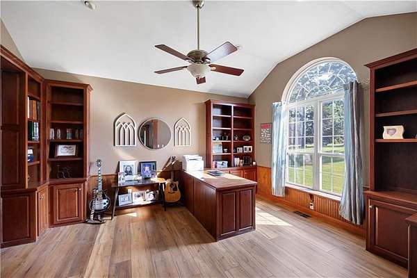 - Built-Ins, Cathedral Ceiling, Ceiling Fans, Pantry, Split Floor Plan, Walk-In Closets, Wet Bar