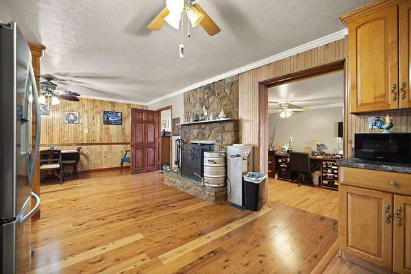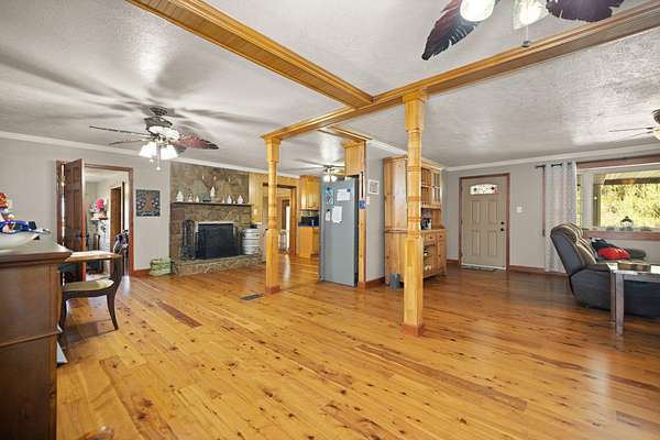 Escape to your own private retreat with this beautiful 20-acre property offering space, privacy, and functionality. This unique home features a spacious open floor plan with warm wood finishes, a large kitchen with ample cabinetry, and inviting living areas perfect for entertaining or relaxing. Outside, enjoy expansive covered porches and a massive carport area ideal for vehicles, equipment, or gatherings. The surrounding acreage provides endless possibilities-whether you're looking for room to roam, hunt, farm, or simply enjoy nature. Equipped with a brand-new Generac generator, this home ensures you'll never be without power, offering peace of mind year-round. A rare opportunity to own acreage with comfort, convenience, and versatility-don't miss your chance to make it yours!