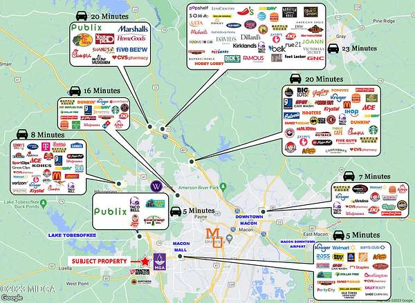 2 Corner Lots with incredible development potential! Great location right across from Middle Georgia State University and easy access to Interstate 475 (Exit 3). Parcels may be purchased separately. Nearby developments include two large buildings with over a million square feet which will be part of a logistics center development, The expansion of MGA's athletic facilities and pavilion, the Robert Hatcher Sr. Convention Center, and the strategic revitalization of Macon Mall's which includes Amphitheater & The possibly the nation's largest Pickleball Court 2-story structure which will house 32 indoor pickleball courts which will drive tourism dollars. It's a great time to invest in Macon, Georgia. Bibb County closed 2022 with $652 million in private investments (MBCIA), including reinvestments from existing industries, there is also the Middle Georgia Regional Airport runway extension project, and what will be huge for the city: The Ocmulgee National Park initiative which is expected to increase visitors per year from 150,000 to 1.3 million! There are many reasons to choose Macon for your next development project. Call today to learn more about this opportunity.