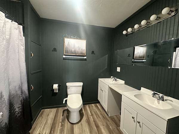 Main part of the house is original historical log home with a concrete cellar. Home has 4 bedrooms and 2 full bathrooms. Owner suite with private bath/walk in closet is on the first floor. Only upstairs bedroom is oversized and could be 2 bedrooms.