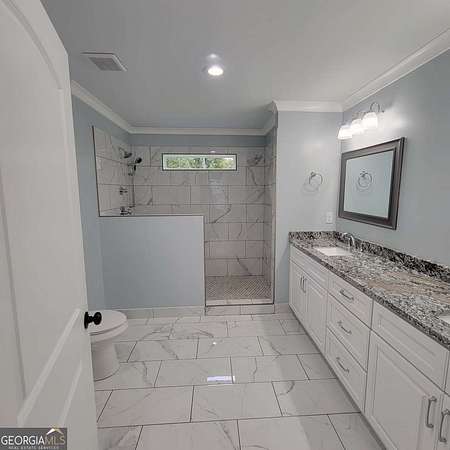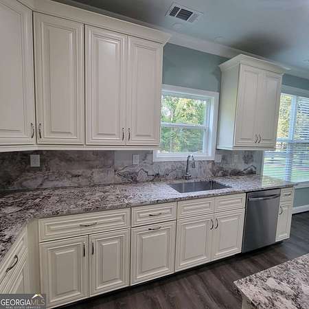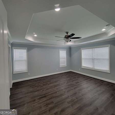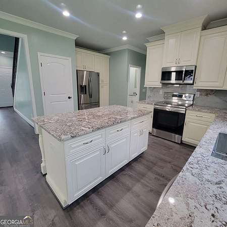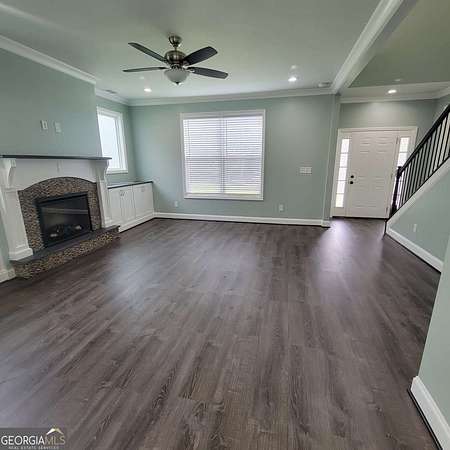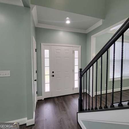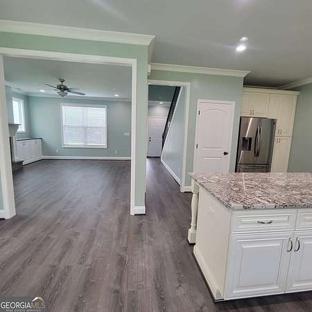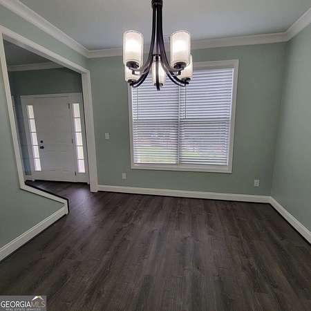Est $2,874/moA 2-story house built in 2021, located off Hwy 211, is just minutes to I-85 and I-985. Custom cabinets in the kitchen with granite countertops, stainless steel appliances, and a center island with seating. First floor 9 fits the ceiling, and the large laundry room has cabinets. The upper level offers 3 bedrooms, one full bath, and a master suite. The Master bath has a large shower, dual vanities & a walk-in closet with custom cabinets. Private large lot 1.72-acre, fenced backyard, and gate.