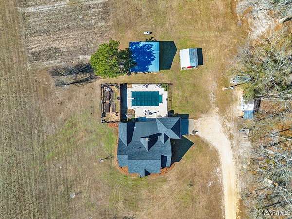 Fine Country Living at Its Best! Welcome to this beautiful custom-built 3 bedroom & 2 bath home situated on 20 pristine acres-the perfect blend of luxury living and peaceful country charm. From the moment you walk in, you'll notice the thoughtful design, open concept layout, and high ceilings that make every room feel spacious, bright, and comfortable. This home was crafted with both family living and entertaining in mind. The tastefully crafted floor to ceiling stone fireplace is an eye catching feature of this home. The large family room flows seamlessly into a gorgeous open kitchen featuring abundant cabinet space, an oversized breakfast bar, and an adjoining dining area with views of the property. The home also includes a generous utility room, great storage throughout, and a carport for convenient parking. Step outside and prepare to be impressed-this property truly shines when it comes to outdoor living. A beautifully designed pool house/Mother-in-Law suite offers endless possibilities, complete with its own kitchen, bedroom, and bathroom, perfect for guests, or extended family. The sparkling in-ground pool and covered back porch seating area create an ideal setting for hosting gatherings, grilling out, or simply enjoying quiet evenings surrounded by nature snuggled by the fireplace. Additional features include a storage shed, open acreage up front, and wooded acres at the back, providing both privacy and hunting opportunities. Whether you're looking for a mini-farm, a weekend getaway, or a full-time residence with room to roam, this property checks every box. Located only minutes from town yet offering a quiet retreat-like atmosphere, this home delivers luxury amenities with the freedom and serenity of country living. Don't miss your chance to own this exceptional piece of Alabama countryside!
