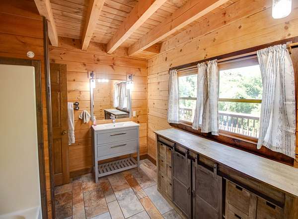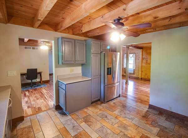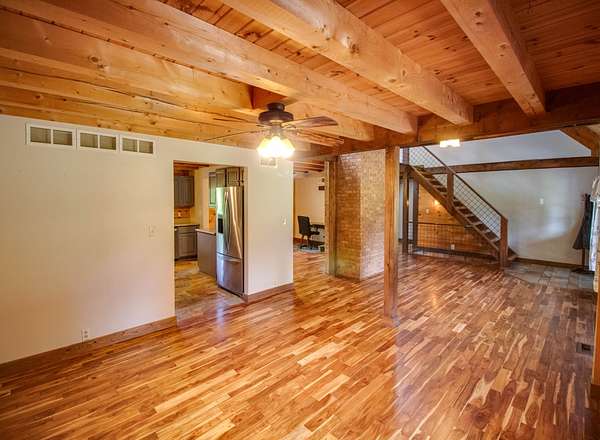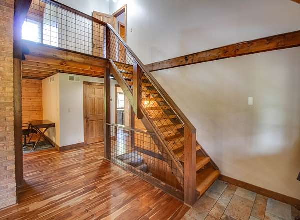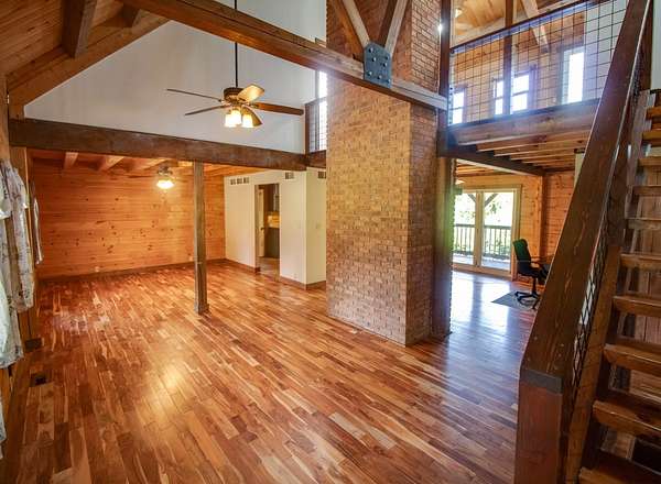 Nestled on 5.1 acres just outside of Millstadt, Illinois, this stunning log home offers the perfect blend of rustic charm and modern comfort. Surrounded by mature trees and open space, the property provides a peaceful retreat while still being conveniently located near Belleville, Columbia, and just a short drive to downtown St. Louis. Inside, the home features an open-concept main floor with soaring ceilings, exposed log beams, and a cozy wood-burning fireplace that anchors the living space. The kitchen is outfitted with stainless steel appliances and custom cabinetry, making it ideal for cooking and entertaining. Hardwood floors run throughout the main and upper levels, and the main floor laundry adds everyday convenience. With three spacious bedrooms and three full bathrooms, there's plenty of room for family or guests. The primary suite offers a private en-suite bath, while a non-conforming bedroom in the finished walkout basement provides flexible space for an office, guest room, or workout area. The basement also includes a full wet bar and entertainment space - perfect for hosting. Step outside and enjoy your own private oasis with an in-ground swimming pool surrounded by a generous patio area. Whether you're relaxing by the fire in the winter or enjoying summer days poolside, this property delivers year-round comfort and charm. If you're looking for space, privacy, and a one-of-a-kind home with timeless character, this log home is a must-see!