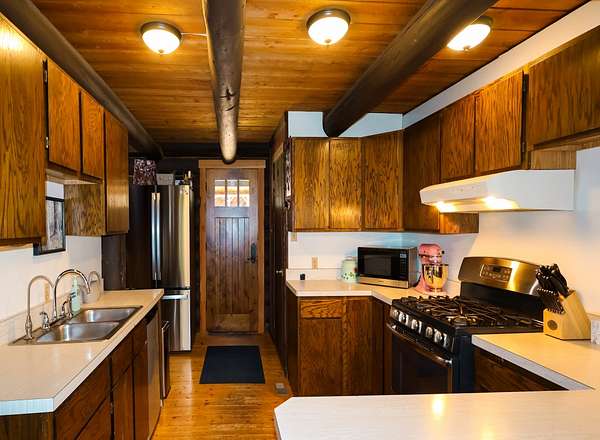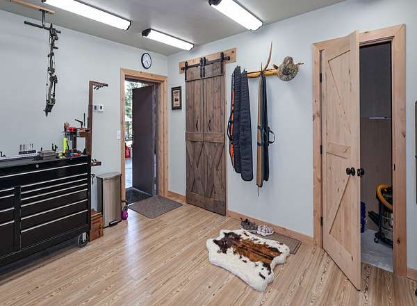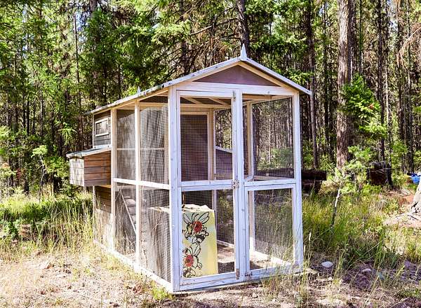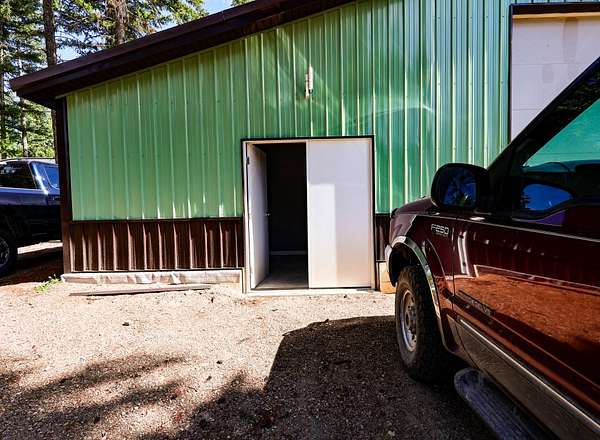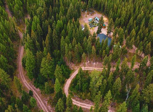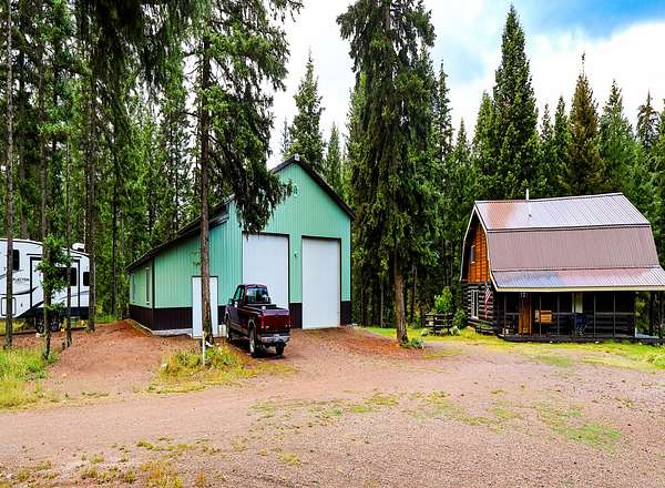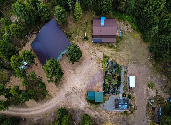 Garden with Raised beds, Permitted green house with rain catchment system. Chicken coop and additional storage sheds and wood storage. 2012 custom built oversized 4+ car (2000 sq. ft.) shop building with 2023 fully finished, 900 sq. ft. insulated addition with radiant floor heating, additional loft storage area, and several rooms to do with as you choose (including a bathroom ready area with floor drain installed). Total shop is ~2900 sq. ft. with 2 oversized electronic overhead roll up doors, poured concrete floors and a 3rd door in the rear of the building for ATV/Snowmobile storage. 400 amp service with 200 amp at shop and 200 amp for house. Two lots, two wells, two septic systems and separate power connections. Well kept and private single family home site overlooking Pierce Creek. Reverse osmosis for pure drinking water at the kitchen sink and whole home water softener. Dishwasher ready. Power box for second site at 336 Old Barn Road has 400 amp service ready and installed but is not connected/metered. Convenient highway access however both sites are set back, private, and on opposite sides of the creek from one another. Thoughtfully thinned, mature timber and well kept and improved roads on property, including a private bridge. Several additional build sites, including with mountain views and bordering forest service for your current enjoyment, future home or accessory dwelling unit(s). Forest service borders 2 sides with a corner marker at the edge of the property.