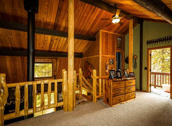 Professionally maintained, 1980s log home with hardwood floors, T&G vaulted ceilings and 2015 home remodel including Efficient Andersen doors & windows throughout, upper level; new electrical, drywall, carpeting, closets and exterior decking and handrails on the balcony; new cabinets; and new exterior cement board siding. Second Bathroom Roughed-in in heated Shop. First floor primary. Open concept loft with two bedrooms. Great room hearth with Blaze King wood stove and lots of windows. Double the Possibilities! Two ~10 Acre parcels. National Forest Borders. Pierce Creek runs through the property under a private road bridge, connecting the two current homesites. Parcel #2 is 336 Old Barn Rd, with 2nd Well/Septic/Electric and entry. Boundary Line Adjustment and/or Separate lot sale possible. Immaculate, custom built 2900 SF shop with insulated rooms, radiant floor heating and oversized overhead doors. Live turn key or build a dream home while living in an efficient well maintained home!