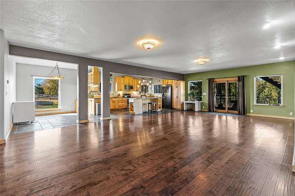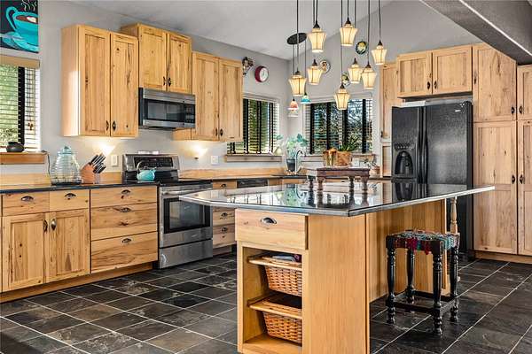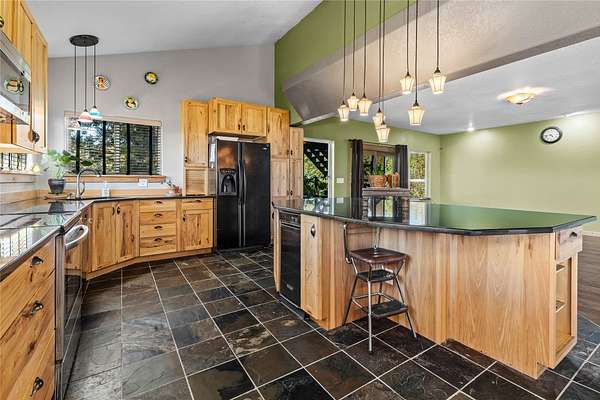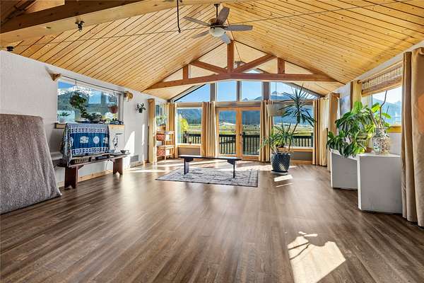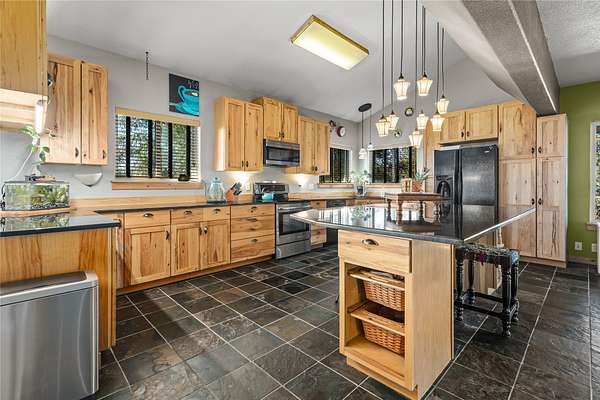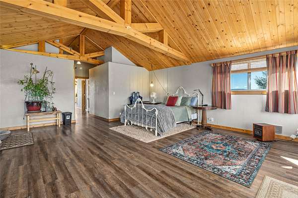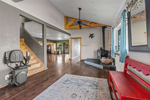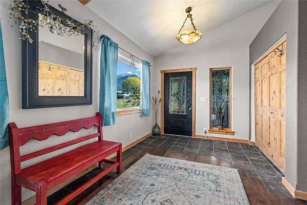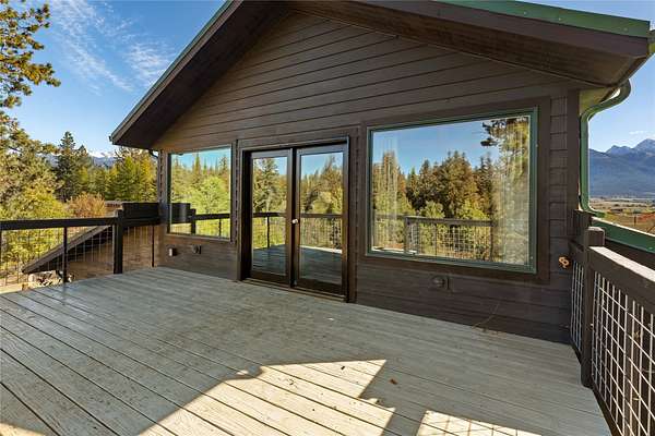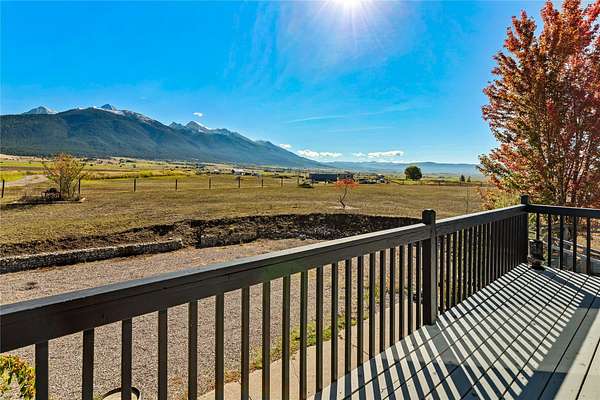 Private 10-acre property in the heart of the Mission Valley, surrounded by Tribal land for added privacy and sweeping views. Open floorplan features engineered hardwood and slate flooring, vaulted ceilings with exposed beams, hickory cabinetry, and radiant in-floor heat throughout the lower level, garage, and bonus room. The kitchen's open-concept layout with granite counters and a custom 5 x 8 island makes it the perfect gathering place while staying connected to the living area. Upstairs, the primary suite offers a great room, clawfoot soaking tub, tiled shower, and two decks, one with stunning Mission Mountain views and the other ideal for watching wildlife along the west side of the property. The interior is ADA accessible with wide doors and zero-level entry, plus an electric chair lift that stays. The bonus room includes both interior and exterior entry, ideal for a studio, guest space, or home office. Outside features a fenced garden, fruit trees, and a powered 10 x 20 shed. With McDonald Lake right up the road and just over an hour to Missoula or Kalispell airports, this home captures true Montana living.