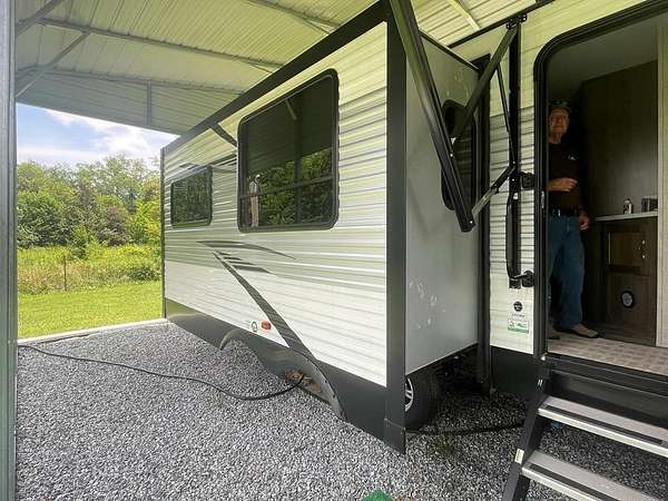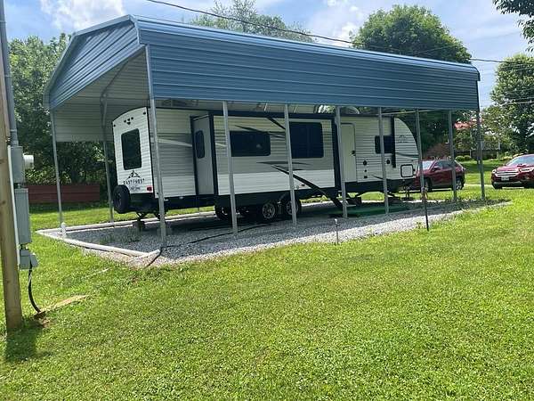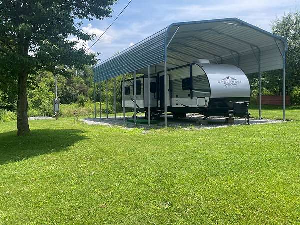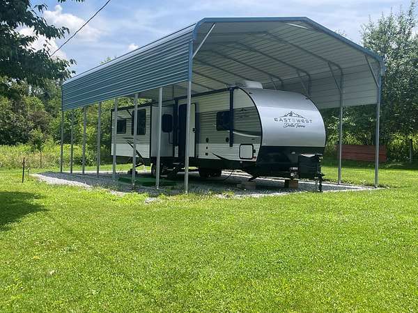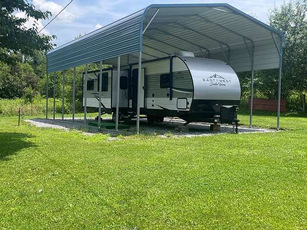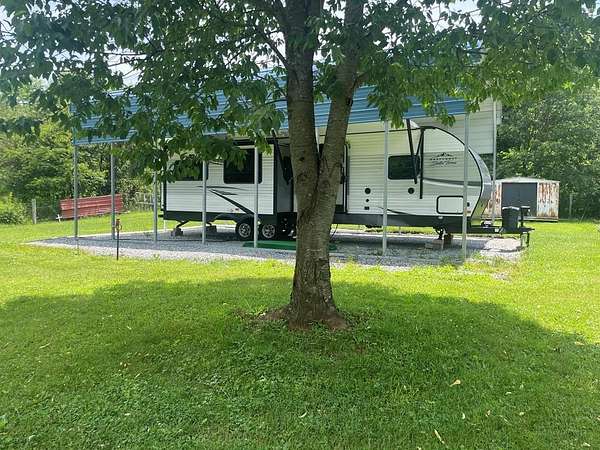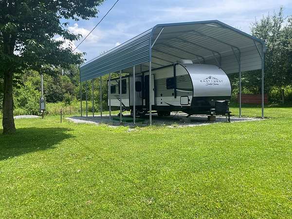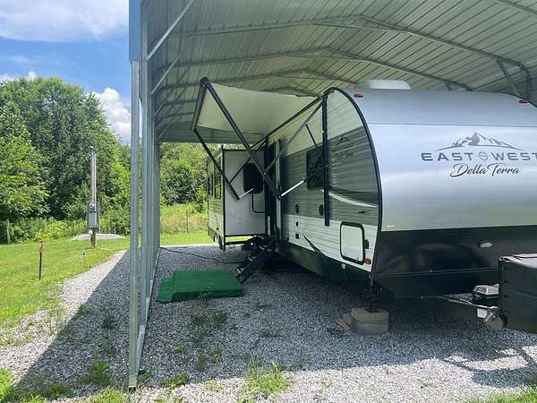 Are you looking for a weekend get away? This 2020 model East West Della Terra top of the line camper is located on 0.54 acre in scenic Sugar Grove, Va. It is located near the Jefferson National Forest, Virginia Creeper Trail, Hungry Mother State Park, and Mt. Rogers National Recreation Area. This would be a perfect place to stay if you enjoy attending Bristol Raceway activities. Just added in 2024 is a super nice camper carport. This 35 ft. camper has numerous features such as a full size electric fridge, microwave, 32 inch tv, and fireplace. The lights are AC or DC. Also included is the gas stove in the kitchen, 3 beds which includes a queen bed in the bedroom, and 2 air conditioners. The bedroom has a tv hookup. There are also 2 slide outs, an awning which includes lights, outside speakers, outside outlets, and tv hookup. The septic, electricity, and town water are already hooked up. There are electric levelers and an electric lift. This nice, level lot could accommodate a single wide or doublewide. The listing price includes both the land and the camper, but can be sold separately, however, seller won't sell the land before selling the camper if the buyer would like to buy separately.