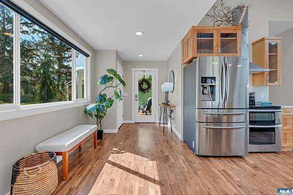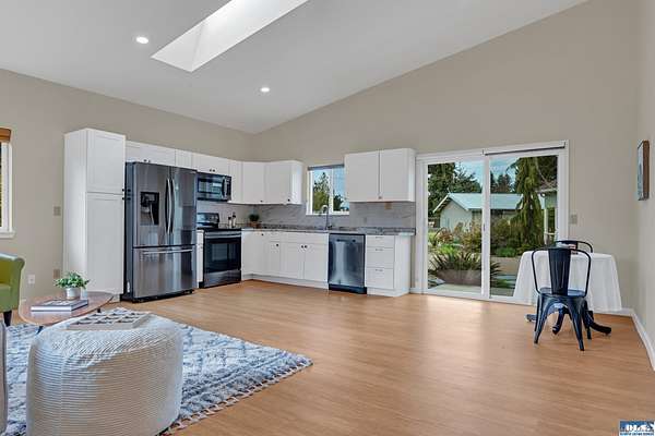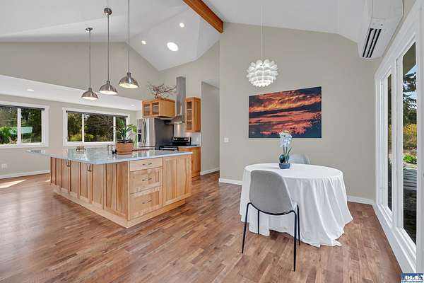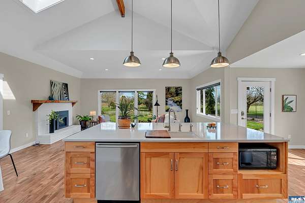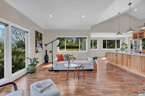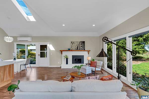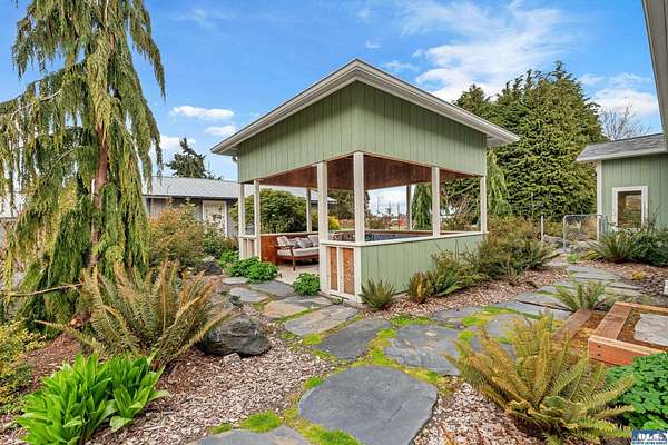 5.83ac Estate w/ADU near Olympic Discovery Trail. Modern remodel, all new elect/plumbing. New roof 2024. NO HOA! Relax & enjoy the sounds of McDonald creek from your hot tub, patio or cabana! Modern finishes, vaulted ceilings, exposed timber beam, gas fireplace, custom mantle, modern lighting & timeless plank floors. The main home; oversized quartz island with seating for 6, cabinets on all sides, double ovens & newer appliances. Primary suite offers French doors, vaulted ceilings, walk-in, & beautiful heated tile ensuite. Wood-wrapped windows with high end coverings throughout. Enclosed back porch & covered front patio. The guest house features full kitchen, vaulted ceilings & ductless heat pump—ideal for multi-generational living, income or guests. Beautifully maintained & landscaped grounds, greenhouse, hen house, hot tub, cabana, gardens, deer fencing, irrigation & pastures for livestock or horses. Just a few mi to Iconic Agnew store, golf, Olympic Discovery Trail & Robin Hill Park