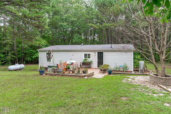 This ~2.56 parcel of land offers the perfect blend of privacy, nature, and convenience of unrestricted land, just 9 miles from downtown Fuquay-Varina. The property boasts a 3 bedroom, 2 bath manufactured home surrounded by mature woods, fruit-bearing trees, and abundant wildlife. There are plenty of extras including a poultry coop, 2-story detached garage, 2-vehicle carport, and a recent perc test confirming the potential for a 4-bedroom custom home. Outdoor living is just as inviting, with a front deck and gazebo offering shaded seating, while the rear patio includes built-in seating and beautiful landscaping that brings year-round color and a peaceful atmosphere. The homesite is the smaller portion of 9.56 acre lot and MUST be purchased with the 7 acre parcel (MLS 10133231). With the recent perc test for a 4 bedroom home, you can live in the current 3 bedroom home while you build your dream house on this secluded gem. Plenty of room for horses or other animals!