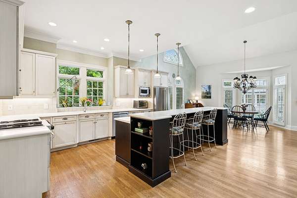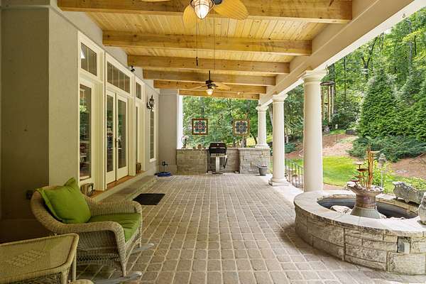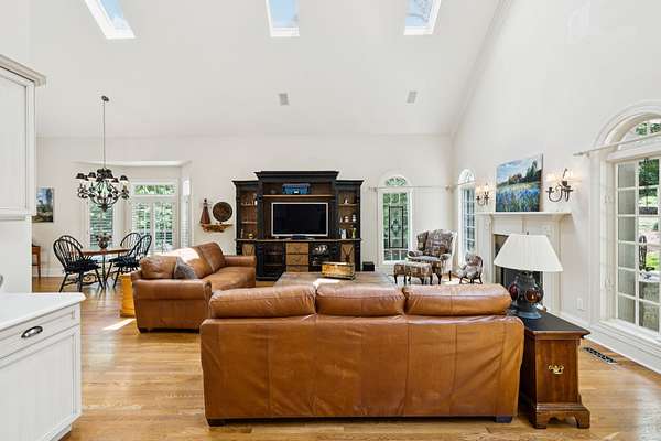 Designed with both elegance and function in mind, the main level offers a thoughtful layout for everyday living and entertaining: a dedicated office, a sunken formal living room with fireplace, formal dining room, and a light-filled kitchen with generous storage, breakfast area, and adjacent family room with fireplace. A spacious bar room offers the perfect spot for evening gatherings, while the main-level primary suite--with its own fireplace--provides a private retreat. French doors lead to a beautiful sunroom and covered patio overlooking your private, peaceful backyard.