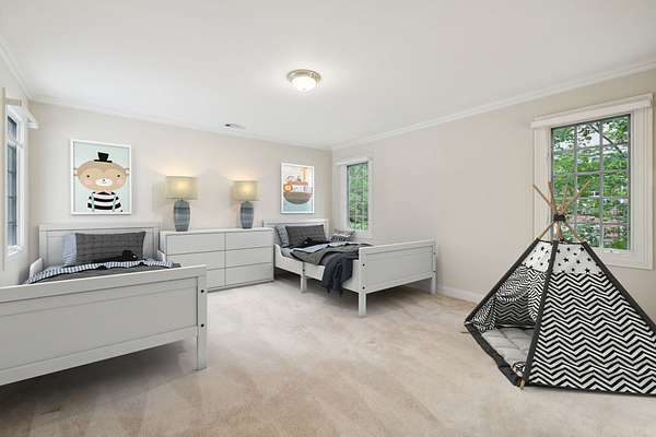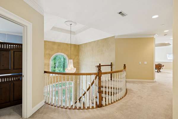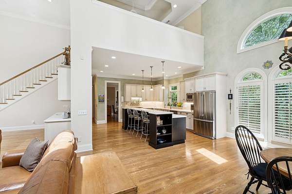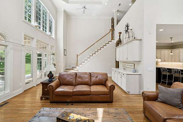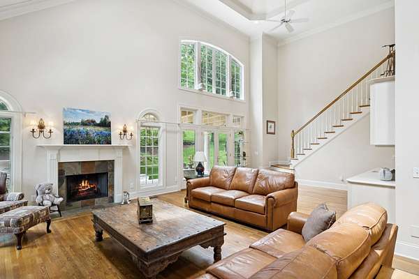 Tucked away on 2 wooded acres in the heart of Brentwood, this custom-built 7,000+ sq ft estate in the Highlands of Belle Rive is full of timeless character and endless potential. Built by Cates Construction, it features stunning architectural details-- From the moment you step inside, you're greeted by soaring two-story ceilings, a sweeping grand staircase, hardwood floors, and dramatic floor-to-ceiling windows adorned with leaded glass transoms and skylights that fill the home in natural light.