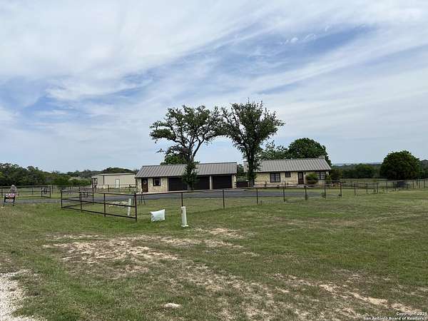 Opportunity of a lifetime for this truly unique 4br/2bath hill country ranch house, detached 3 car garage with guest quarters, 24X30 2 stall barn on 5.21 acres and is one of the original residences in Bridlegate Ranch. Pull your wagon with the kids and pool toys to the amenity center pool, clubhouse, fitness center, guest rooms, tennis/pickleball/basketball court, sand arena and mail center. The gated 2000+acre ranch is high fenced and bordered by the Medina River with a community river park for picnics, disk golf and soccer. Through your back gate bike, hike or go horseback on the bridlepath that traverses the entire ranch. A 10-minute drive to the Medina River Park and downtown Bandera Texas restaurants and shoppes with tons of western culture, popular entertainment venues and gathering places.