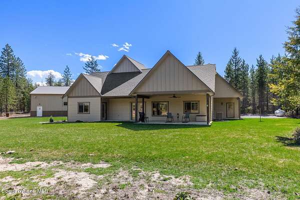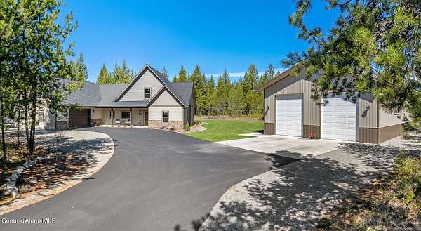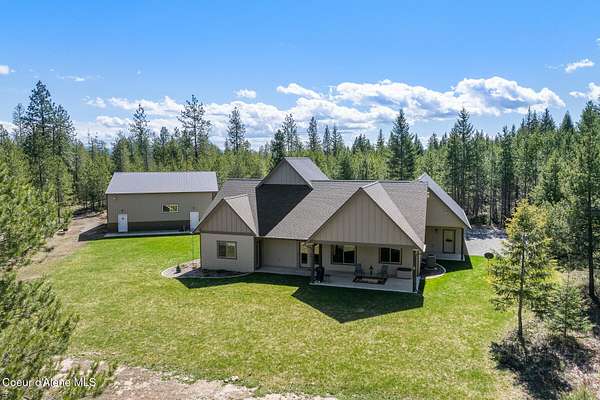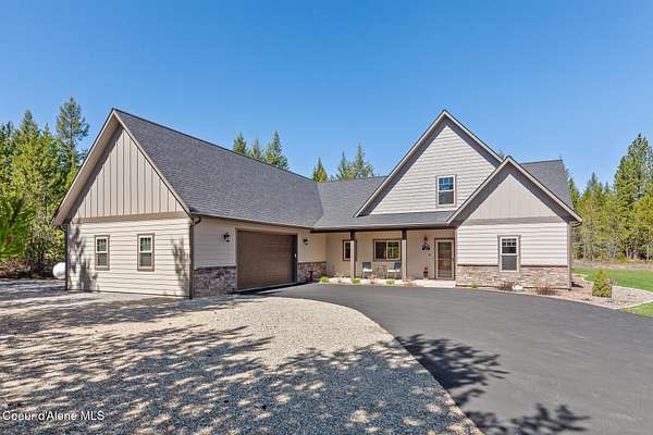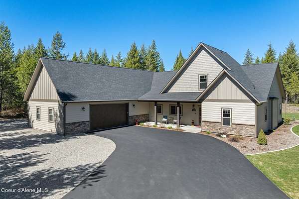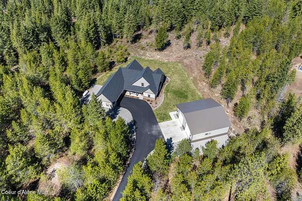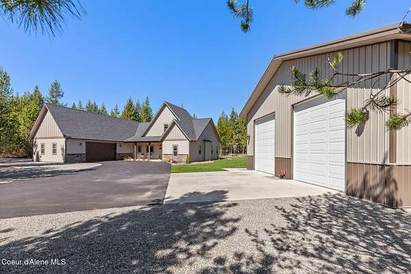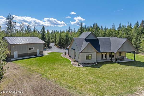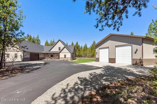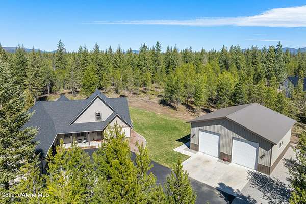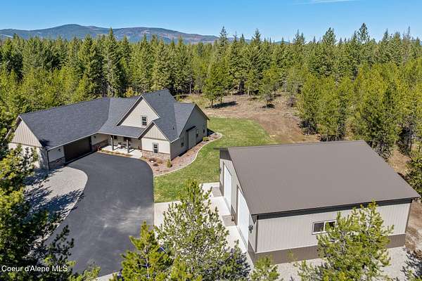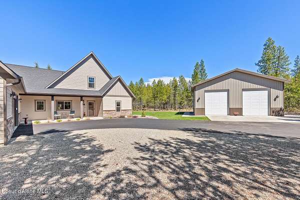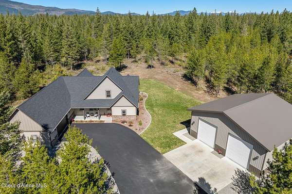 Custom Home with 40'x40' Shop and Apartment in highly sought-after Quail Ridge Estates! Situated on private 5.08 park-like treed acres and neighborhood borders over 2,500 acres of state land. This beautiful property offers the perfect combination of privacy, space and North Idaho outdoor lifestyle. Spacious 2,145SF home featuring 3BR/3BA plus a 500SF fully furnished Apartment with an additional 1BR/1BA, ideal for additional living quarters or multi-generational setup. The main home features a beautiful kitchen with stainless steel appliances, ceiling-height custom cabinets complete with crown molding, large kitchen island, leathered granite countertops, full tile backsplash and expansive walk-in pantry with floor to ceiling shelving. Additional upgrades include beautiful knotty alder doors, trim and cabinets, luxury vinyl plank flooring, central air, heat pump, Anderson windows, pre-plumbed for gas fireplace, large mud room complete with a sitting bench, refrigerator, washer, dryer included. The oversized laundry room offers abundant cabinetry and storage space, stainless steel sink and built-in ironing board. The custom master bathroom features a stunning spa-like tiled waterfall shower, dedicated recirculation system for master shower, quartz countertops, dual sinks and a huge walk-in closet with california closet built-ins. Spacious 3rd bedroom/bonus room with full bathroom and closet- perfect as a 2nd master suite, guest retreat, office, or your dream hobby space. Private well producing 30+ GPM and located over the aquifer. Exterior features include hardi-plank siding and LeafFilter gutter guards with lifetime warranty for low maintenance. Finished and oversized 2-car garage with utility sink, newly paved asphalt driveway in 2023(sealed in 2025) and tons of additional parking space including large gravel area. Relax on the spacious covered patio overlooking private acreage with a walking trail around the property and a great mixture of trees and open space. Beautiful backyard has sprinkler system and drip system. Heated and insulated 40'x40' Shop with 13-foot doors, 220-volt, its own propane tank and huge loft area for tons of storage. Fully furnished apartment with approximately 500SF one-bedroom, one-bathroom ideal for additional living quarters. Apartment has luxury vinyl plank flooring, knotty alder trim, F/W/D included and is fully set up and move in ready. Quail Ridge Estates borders over 2,500 acres of state land offering endless outdoor opportunities. Great location conveniently located between Sandpoint and Coeur d'Alene for easy access while still offering peaceful country living off a paved road and close to beautiful lakes, hiking and endless outdoor recreation!