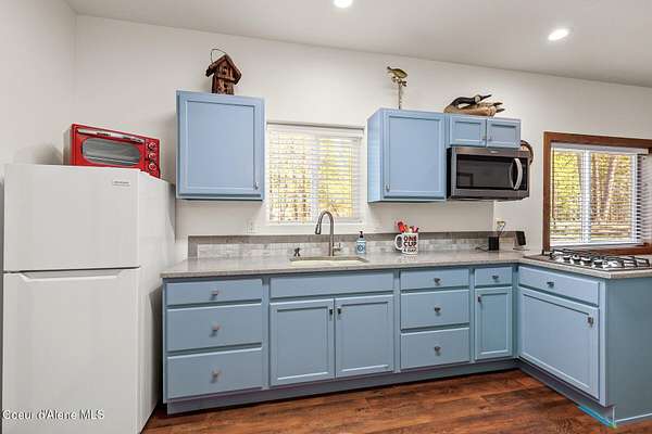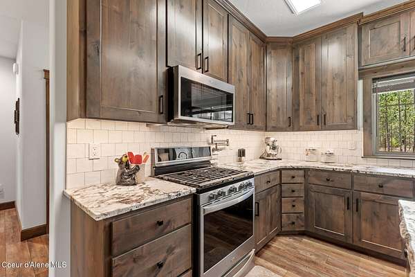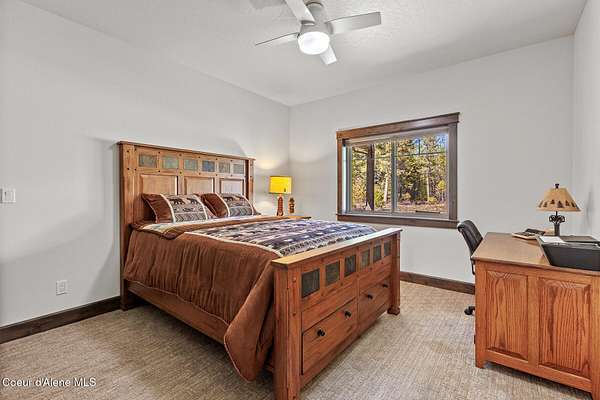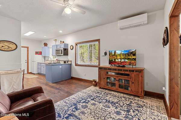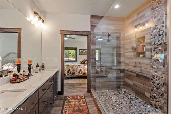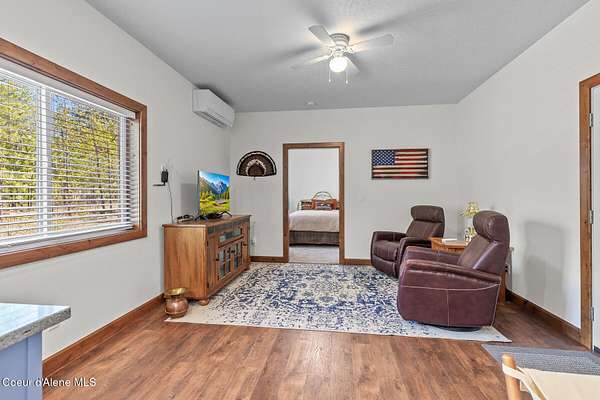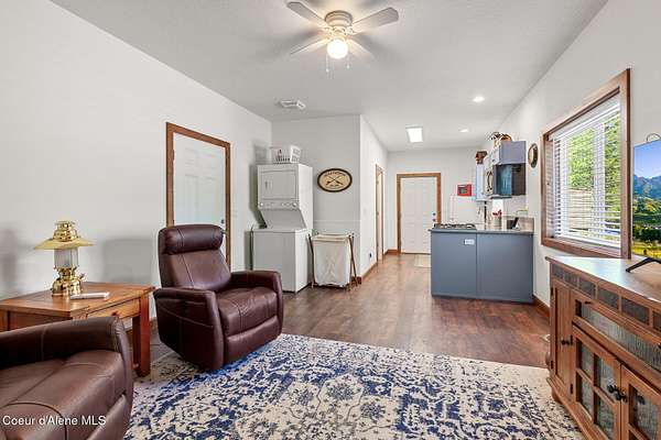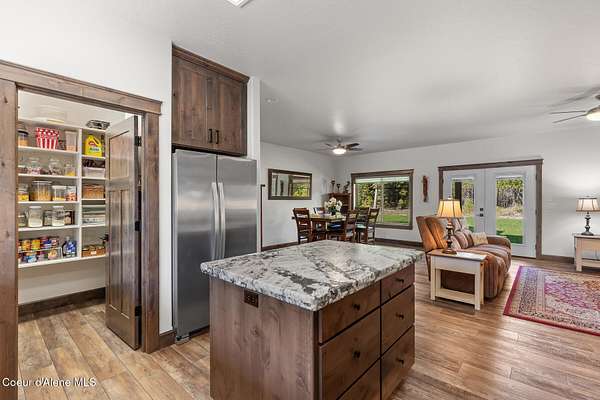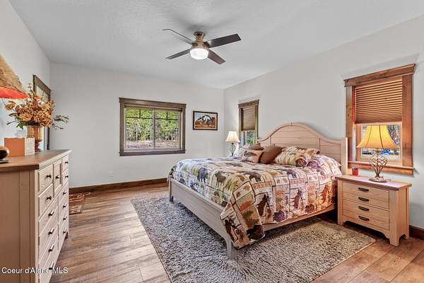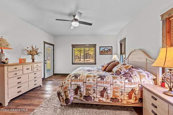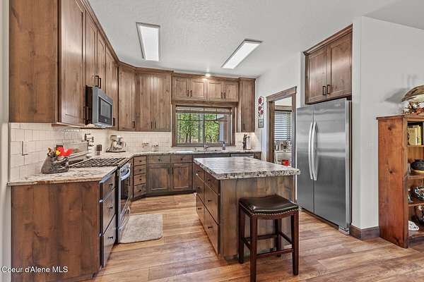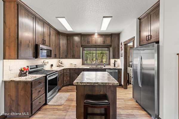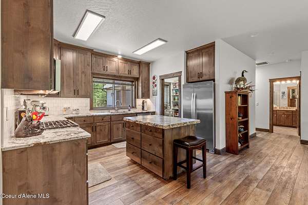 Custom Home with 40'x40' Shop and Apartment in highly sought-after Quail Ridge Estates! Situated on private 5.08 park-like treed acres and neighborhood borders over 2,500 acres of state land. This beautiful property offers the perfect combination of privacy, space and North Idaho outdoor lifestyle. Spacious 2,145SF home featuring 3BR/3BA plus a 500SF fully furnished Apartment with an additional 1BR/1BA, ideal for additional living quarters or multi-generational setup. The main home features a beautiful kitchen with stainless steel appliances, ceiling-height custom cabinets complete with crown molding, large kitchen island, leathered granite countertops, full tile backsplash and expansive walk-in pantry with floor to ceiling shelving. Additional upgrades include beautiful knotty alder doors, trim and cabinets, luxury vinyl plank flooring, central air, heat pump, Anderson windows, pre-plumbed for gas fireplace, large mud room complete with a sitting bench, refrigerator, washer, dryer included. The oversized laundry room offers abundant cabinetry and storage space, stainless steel sink and built-in ironing board. The custom master bathroom features a stunning spa-like tiled waterfall shower, dedicated recirculation system for master shower, quartz countertops, dual sinks and a huge walk-in closet with california closet built-ins. Spacious 3rd bedroom/bonus room with full bathroom and closet- perfect as a 2nd master suite, guest retreat, office, or your dream hobby space. Private well producing 30+ GPM and located over the aquifer. Exterior features include hardi-plank siding and LeafFilter gutter guards with lifetime warranty for low maintenance. Finished and oversized 2-car garage with utility sink, newly paved asphalt driveway in 2023(sealed in 2025) and tons of additional parking space including large gravel area. Relax on the spacious covered patio overlooking private acreage with a walking trail around the property and a great mixture of trees and open space. Beautiful backyard has sprinkler system and drip system. Heated and insulated 40'x40' Shop with 13-foot doors, 220-volt, its own propane tank and huge loft area for tons of storage. Fully furnished apartment with approximately 500SF one-bedroom, one-bathroom ideal for additional living quarters. Apartment has luxury vinyl plank flooring, knotty alder trim, F/W/D included and is fully set up and move in ready. Quail Ridge Estates borders over 2,500 acres of state land offering endless outdoor opportunities. Great location conveniently located between Sandpoint and Coeur d'Alene for easy access while still offering peaceful country living off a paved road and close to beautiful lakes, hiking and endless outdoor recreation!