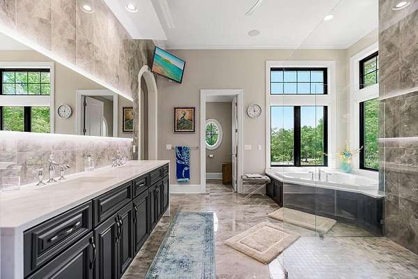 - Bidet, Custom Cabinets, Elevator, Pantry, Sauna, Walk-In Closet(s), Wet Bar