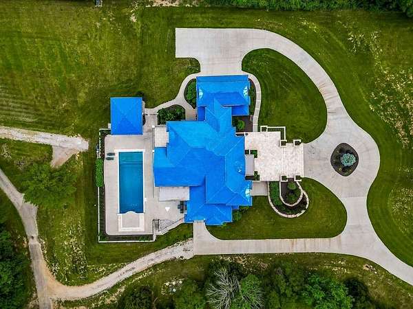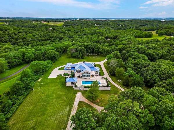 Once in a lifetime opportunity to own one of the largest private residential estates in the Johnson County metro area. Set on 14.37 secluded acres in the heart of the city, this extraordinary estate offers a rare blend of luxury, privacy, scale, and convenience. Built in 2020, the 9,000+ square-foot custom home was designed with exceptional quality and attention to detail throughout. Follow the gated tree lined driveway and full circle drive to a residence that features refined architecture, expansive living and entertaining spaces, luxury finishes, a private elevator servicing multiple levels, a Chef's Kitchen and back Pantry Scullery with premium appliances. The dramatic Crystal Chandelier creates a striking focal point from the main living area. Summer is almost here where you can enjoy your own private outdoor amenities designed for year-round enjoyment and include a resort-style heated Copper Ionizer Gunite Pool with Cabana, a diving platform, cascading waterfall, and gunite hot tub positioned beneath a glass-filled firebox. 30 x 60 Quonset hut offering flexible space for pickleball, basketball, storage, or recreation. An 1,100sq ft guest house w/ 2-car attached garage sit at the back of the property. The grounds provide a level of privacy and presence rarely found within city limits. Located in a rapidly developing area just minutes from major highways and within easy reach of the De Soto/Panasonic technology corridor, this property is also positioned for strong long-term upside, with meaningful potential for land value appreciation over the next 5 to 10 years. This is a rare offering for relocating executives, buyers seeking a private estate or multigenerational use, investors, or anyone searching for a signature residence with exceptional lifestyle appeal. Call Agent for Private Viewing!
