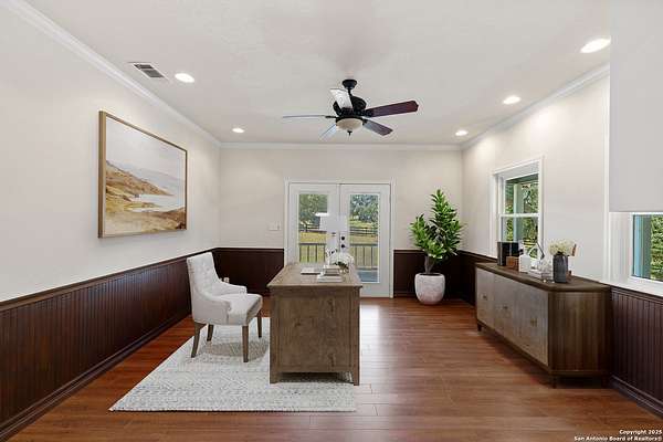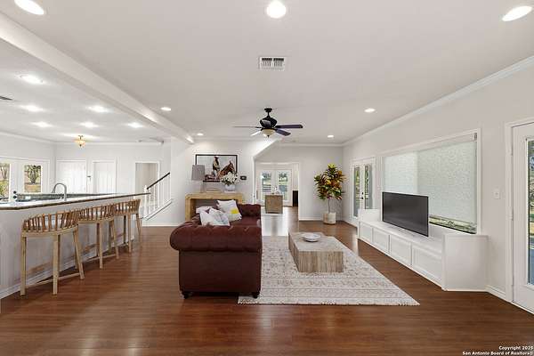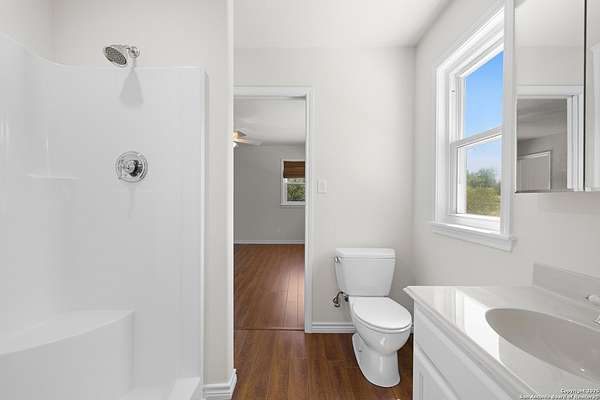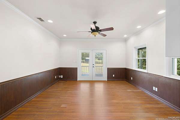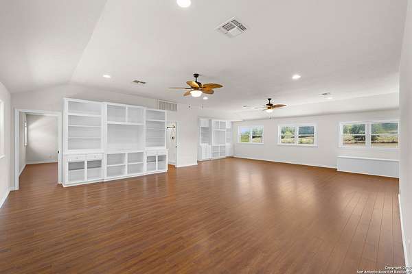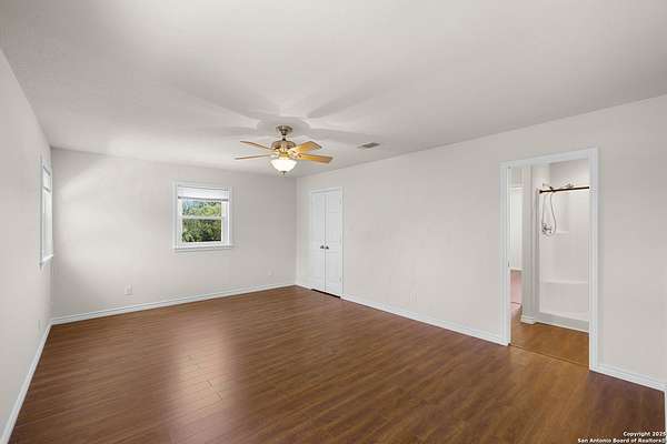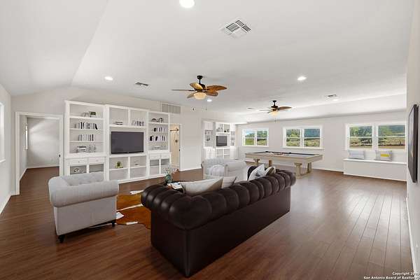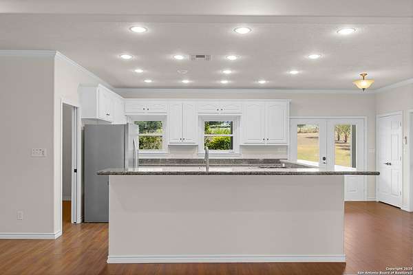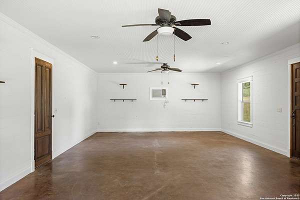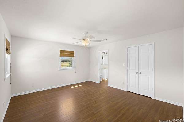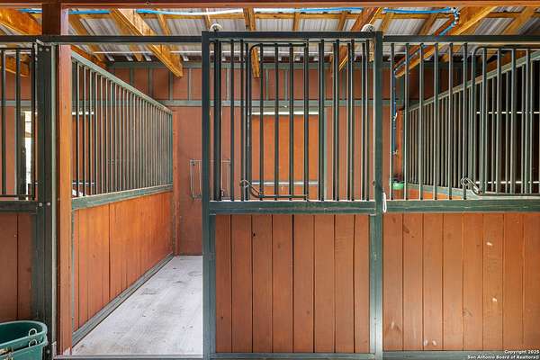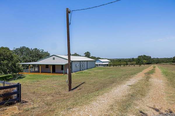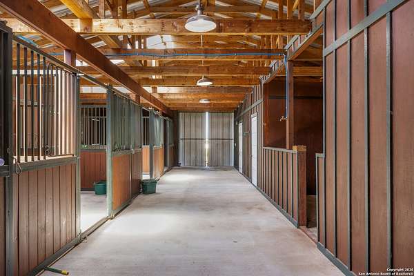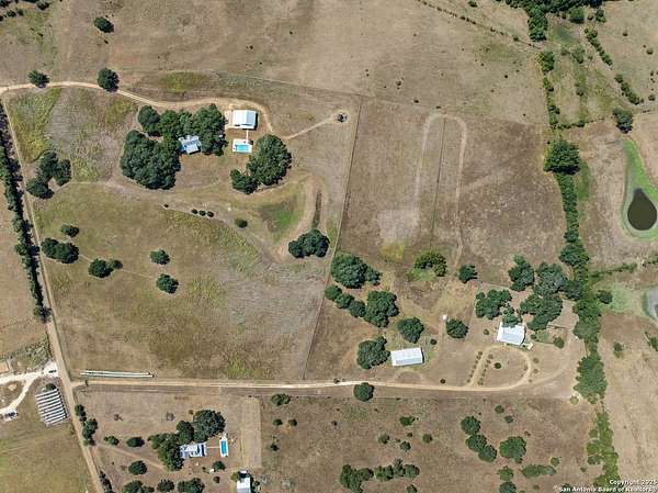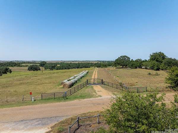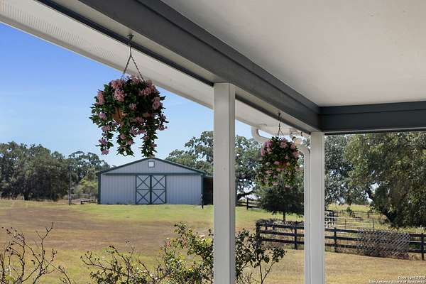 This beautifully maintained 5-bedroom, 3.5-bath ranch offers a move-in ready retreat with fresh paint inside and out. The open-concept kitchen features white cabinetry, granite countertops, gas cooking, and a breakfast bar flowing into a bright living area. A wrap-around porch invites you to enjoy serene country views. The main-level primary suite boasts dual closets, separate bath areas, and private porch access. Upstairs, four bedrooms and an oversized game room provide ample space for family and guests. Equestrian amenities include a large barn with bunk house, tack room, horse stalls, workshop, and storage, opening to an arena for training and riding. Mineral rights are included. Experience peace, privacy, and true country living. Easy access to IH10.