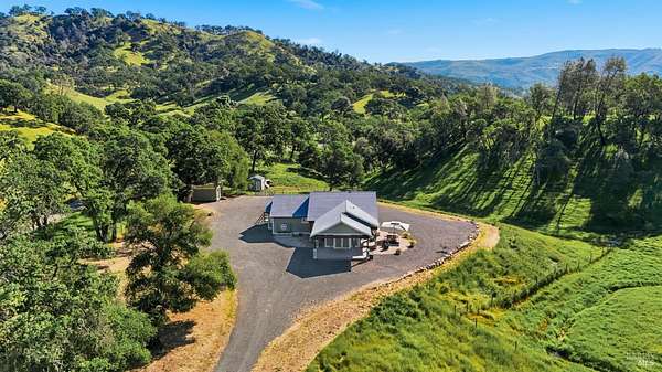 Private Napa Foothill Retreat with Energy Independence and Net-Zero Electricity Costs! With a new roof in 2026, full exterior repaint, and a proven history of near net-zero electric costs, this private 20-acre Napa foothill property offers an uncommon combination of beauty, resilience, and long-term efficiency. The single-story Craftsman residence features 3 bedrooms, 2 bathrooms, and approximately 1,913 square feet of thoughtfully designed living space. Hardwood floors, Vermont soapstone counters, maple cabinetry, and a Rumford fireplace create a warm, comfortable interior, while French doors in the kitchen and primary suite open to quiet foothill views. Designed for dependable day-to-day living, the home includes a 28-panel solar array paired with Tesla's latest Powerwall 3 batteries Tesla Powerwall energy storage batteries, EV charging capability, and a 14-kW whole-house backup generator. Since 2022, solar production has offset annual electricity usage, including EV charging, while supporting reliable backup power during outages. The system also benefits from transferable NEM 2.0 status, allowing a future owner to continue receiving favorable utility credits. Water is supplied by a shared spring with 5,000 gallons of on-site storage and whole-house filtration. Dual-zone HVAC enhances year-round comfort. Approximately 13 of the 20 acres are fenced, offering controlled, usable land without the need for additional infrastructure. A detached workshop and two separately fenced enclosures adjacent to the home offer practical utility for pets, gardening, or other pursuits. A rare blend of Napa foothill privacy, practical infrastructure, and materially reduced operating costswell suited for full-time living or as a refined second-home retreat.