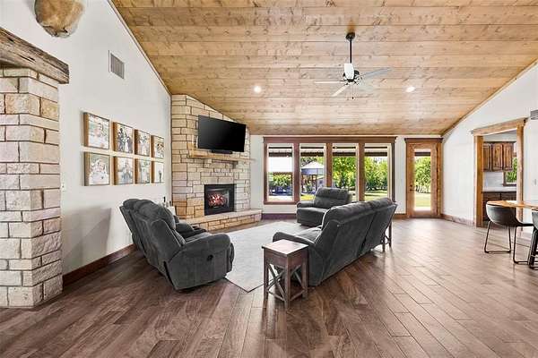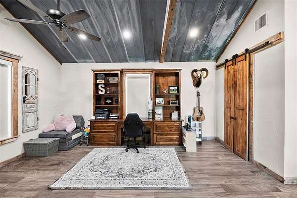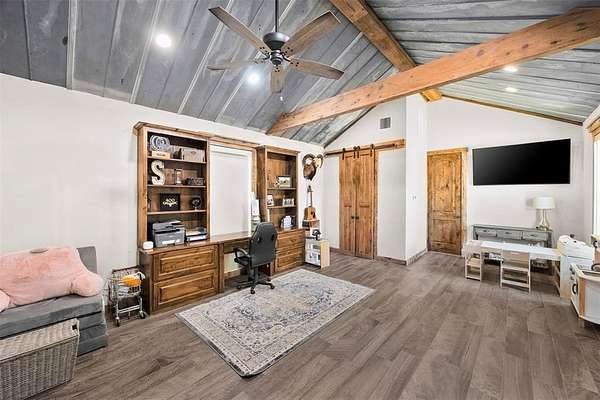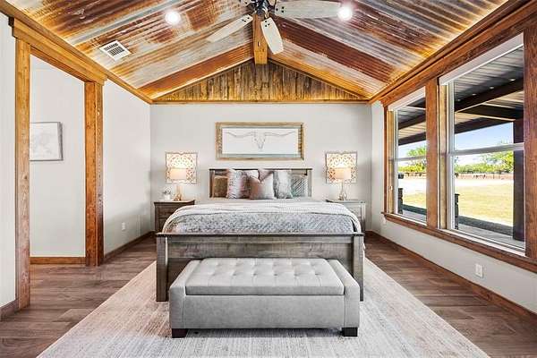 Escape to the perfect blend of rustic charm and functional country living on this beautiful 23-acre horse property with potential commercial use. The 3-bedroom, 2-bath home offers approximately 2,016 square feet with a warm, inviting design. Designed with equestrian and livestock use in mind, the property features 60x60 shop with concrete floors, a separate 3-stall horse barn with tack room and dirt flooring, pipe fencing, multiple pastures, and lean-to for shelter. Riding pen for training and enjoyment. Enjoy a large outdoor entertaining area, perfect for hosting and relaxing while taking in the scenic surroundings. Mature oak, elm, and pecan trees provide shade and enhance the natural beauty of the land. A bonus guest quarters offers flexibility for guests and extended family. With its location and versatility, this property also present opportunity for commercial use, making it ideal for horse enthusiasts, business owners, or those seeking a peaceful country lifestyle with added potential.
