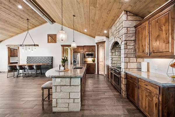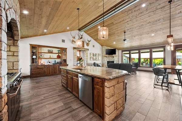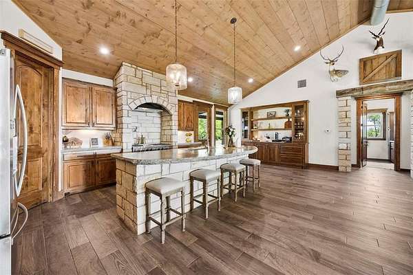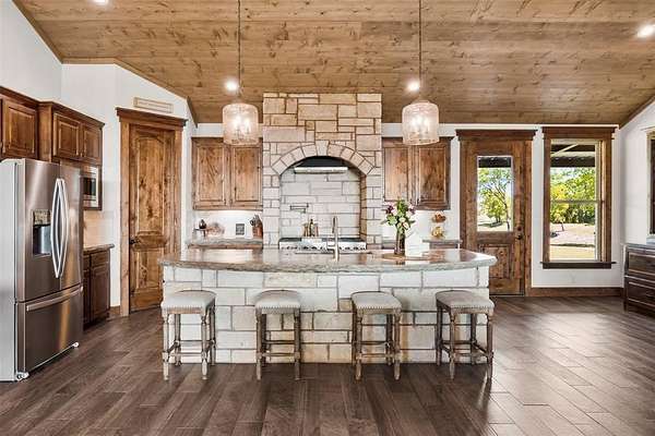 - Built-In Features, Decorative Lighting, Eat-In Kitchen, Kitchen Island, Natural Woodwork, Open Floorplan