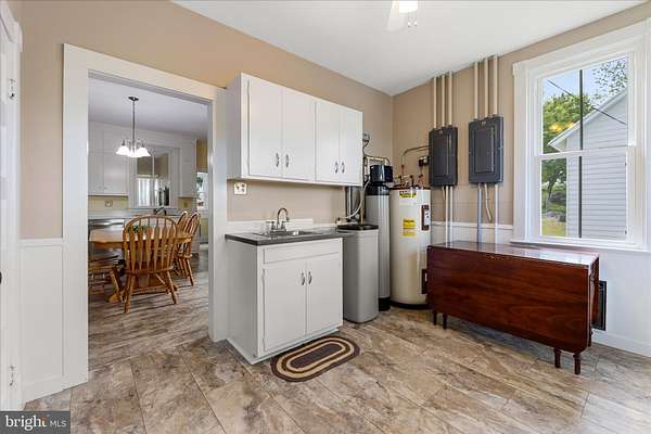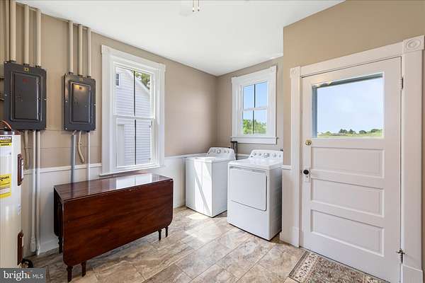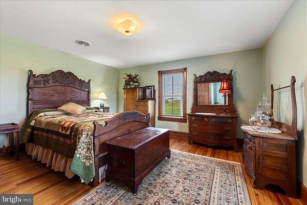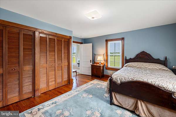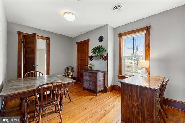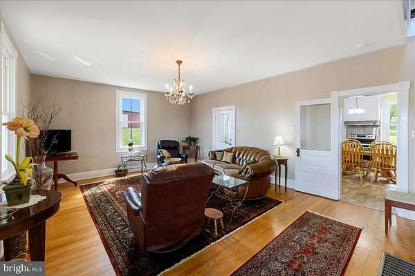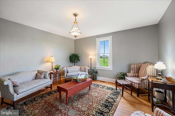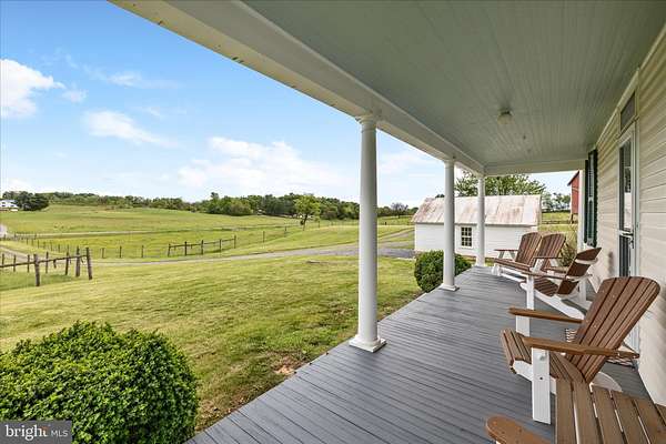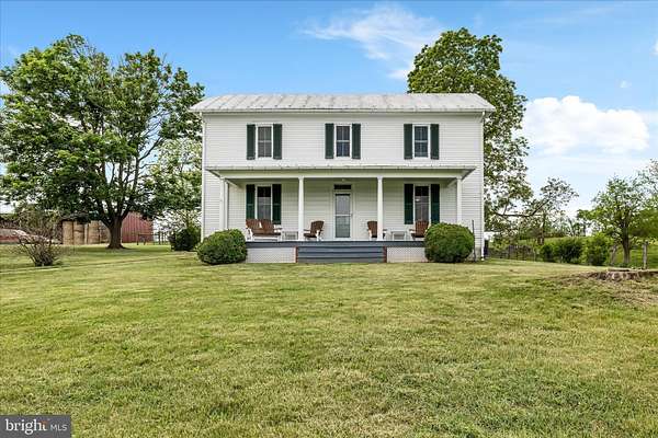 Welcome to 5452 Middle Road, a beautifully renovated farmhouse offering the perfect blend of historic charm and modern comfort, all set on a picturesque 10-acre property. Enjoy peaceful views of rolling pastures, barns, cows, and mountains, all without the upkeep of maintaining the land yourself. This thoughtfully updated home is filled with character, featuring beautiful trim work, hardwood floors throughout, and built-ins that add warmth and personality. The main level includes a spacious family room, a bright office (or potential bedroom), a full bath with walk-in shower, and a large mudroom/laundry area. The eat-in kitchen is a true highlight, offering plenty of cabinet space, a walk-in pantry, and access to the brick patio that's perfect for outdoor dining or relaxing with a view. Upstairs, you'll find three generous bedrooms and a shared full bath. One bedroom even features an enclosed porch and a cozy office area, ideal for remote work or quiet reading time. Fully furnished with a tasteful blend of modern and antique pieces, the home can also be rearranged to suit your needs. Additional outdoor spaces include a covered front porch and a private brick patio surrounded by beautiful landscaping. All of this in an idyllic setting just minutes from town, offering the serenity of country living with the convenience of Winchester close by.