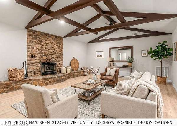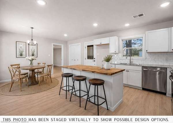 From the moment you step inside this beautifully renewed 2,853 sq. ft. home, you can feel the intention behind every update. The welcoming stone entry wall sets the tone, leading you into a space filled with thoughtful improvements. Brand-new flooring and fresh paint guide you through a layout designed for gathering and everyday comfort. The home offers two distinct living areas. The formal living room features a vaulted ceiling with wood beams and a beautiful fireplace. The expansive 25*25 bonus living room provides incredible flexibility for entertainment or large gatherings. The kitchen blends style and function with new cabinetry, granite countertops, butcher-block accents, subway tile backsplash, new appliances, and a walk-in pantry. Storage continues with multiple hallway closets and a large laundry room. The primary suite includes a custom walk-in closet, double sinks, and a tiled walk-in shower. All bedrooms are generously sized, and the updated hallway bathroom features double sinks and a tiled shower/tub. With new lighting, picture windows, flooring, siding, and a newer HVAC, this home is truly move-in ready. Outside, enjoy 2.38 acres with fruit trees, open space, and a concrete slab ideal for a future shop(back field). A well-maintained metal roof, ample parking, and beautiful Mount Magazine views-especially at sunset-enhance the property. Additional perks include Magel fiber-optic internet for exceptional speed. Located across from the Magazine ballfields on E Hwy 10, this home offers peaceful country living with quick access to town. Experience local service rooted in trust and commitment - reach out today to schedule your private tour.