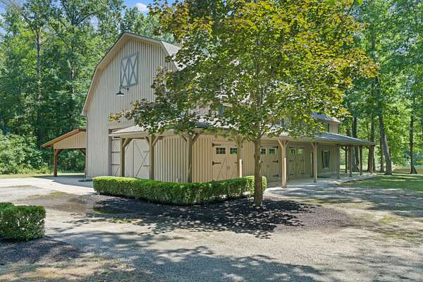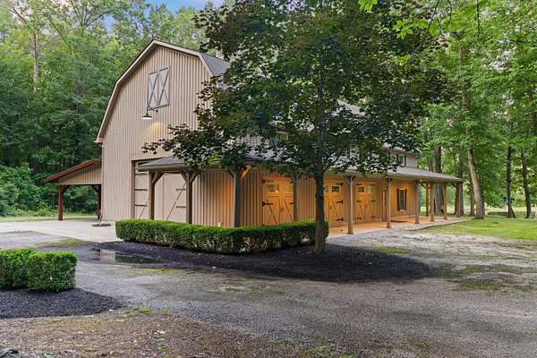 This H-O-M-E has everything... except a name. And really, how do you name a custom-built, 7,000+ SQFT Bob Webb masterpiece, tucked deep in the woods on 38 private acres with a secret room, a party barn, and its own gas station? You don't. You just move in, throw a legendary housewarming party, and let the story write itself. A gated entrance and a nearly 3/4 mile-long private driveway set the tone, you're not just arriving at a home, you're arriving at an experience. Inside, stunning hardwood floors stretch across the main level, connecting an open-concept living room (with forest views and a gas fireplace) to a dream-worthy chef's kitchen with a double-wide island, granite countertops, top-of-the-line appliances, and a fully loaded butler's pantry that could host its own cooking show. Off the kitchen, a beautiful laundry room with quartz counters keeps things practical and pretty. Down the hall, a massive family/game room stuns with 20'+ ceilings, a wood-burning stove, and a full bath with slate tile floors. Upstairs features brand-new carpet, 4 bedrooms and 3 full baths, including two ensuites and a dreamy Jack & Jill. The oversized primary suite is a true retreat with its own living room, spa-like bath, workout space, and yes, a secret room. (Shhh ..or don't. It's a killer party flex.) Need more space? The full basement has 10'+ ceilings and is plumbed for a bath, ready for your next big idea. Outside? 1,500+ SQFT of patio space with a built-in kitchen, fireplace, and pond for fishing. Oh and the heated/cooled party barn has an upstairs apartment, half bath, 10+ car storage, a 240V plug for EVs, and of course private gas pumps.This isn't just a home. It's a full-on lifestyle. You've officially entered main-character living. Homes like this don't just hit the market, they hit the group chat. They go viral. They become that house. The only question is, will it be yours?