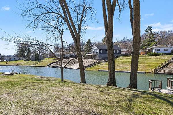 Great potential building site including two lots along the North channel of Indian Lake, a 500 acre all-sport lake. Includes approximately 136.7' along water, 144.7' along road by 137/154' deep. Ideal for walkout lower level construction. Very spacious site as typically double lots are not common to find. Municipal sewer available and in use currently. Single wide mobile home will need to be removed by buyer. Use the lake's multiple sand bars for anchoring and swimming. Private park also available for lot owners in this subdivision. Contact Silver Creek Township (Cass County, MI) for building codes. Dock boats at your waterfront shore. Lines drawn on aerials are general approximates/estimates and do not represent actual property lines or a survey. Water sources here are private water wells. Indian Lake has nearby pubs and 27 hole golf course, lower boat traffic, and a private yacht club.