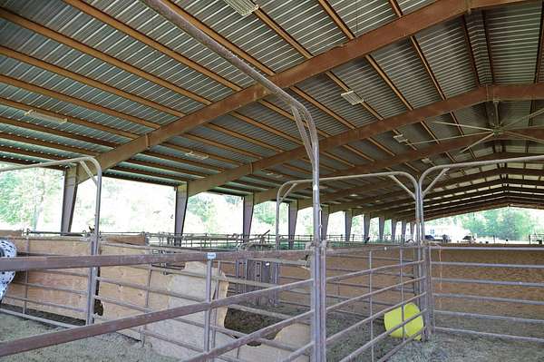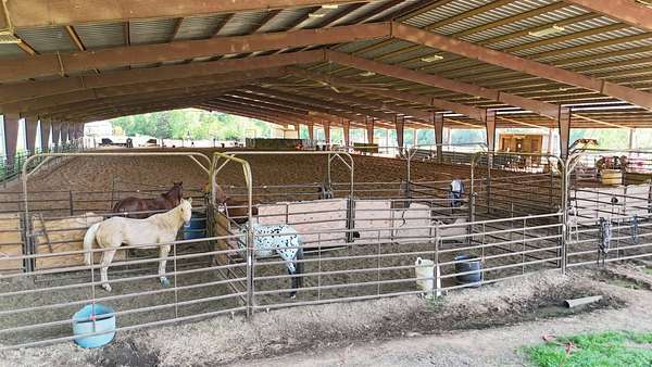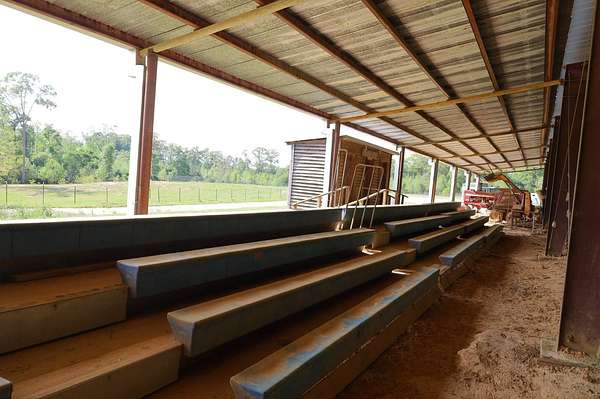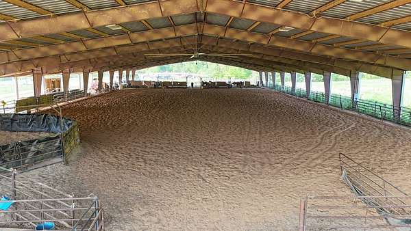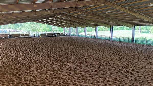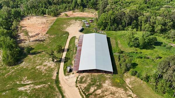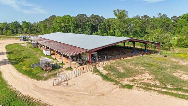 Massive Priefert Arena for sale in Downsville, LA. This property is perfect for all your riding and training needs. It features roping boxes and a roping chute. Return alley, breaking pen, and eight holding pens. This covered riding arena has two macro air fans to keep you cool in the summer. There is underground electricity, a 400 amp breaker box, and a two-inch water line ran to wet the arena. This property has highway frontage on Highway 145. There are 10 surveyed acres, with 17 additional adjacent acres that could be purchased. You will also find bleachers and bathrooms here. Gutters are in place on each side of the arena. This land is on a hill and drains well. The arena is 34,440 square feet with a 5,740 square foot drop shed. It is only one mile from Downsville and six and a half miles north of Interstate 20. Conveniently located between Ruston and West Monroe. The soils are primarily Briley Loamy fine sand. Squire Creek Country Club is 6 miles away, North Louisiana Expo Center is 12 miles away, and Ike Hamilton is 21 miles away. With metal costs today, this could cost a million dollars to build. Call today for more information.