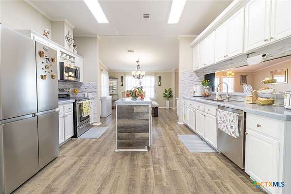 - All Bedrooms Down, Chandelier, Home Office, Kitchen Island, Multiple Dining Areas, Multiple Living Areas, Separate Formal Dining Room