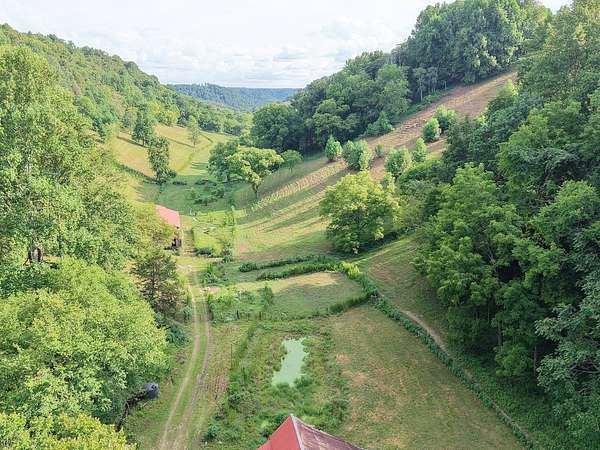 The landscape rolls gently from scenic hilltops to a sheltered valley, offering both privacy and security--a homesteader's dream. Multiple natural springs flow freely year-round, supplying fresh gravity-fed water to the home and gardens. Rich soil supports abundant vegetable harvests in every season, while fertile pastures can sustain livestock, poultry, and a bounty of farm-fresh eggs. A four-acre field awaits your crop of choice--hay, corn, soybeans--and the land has been free of pesticides for at least five years.