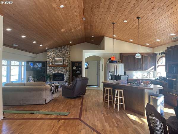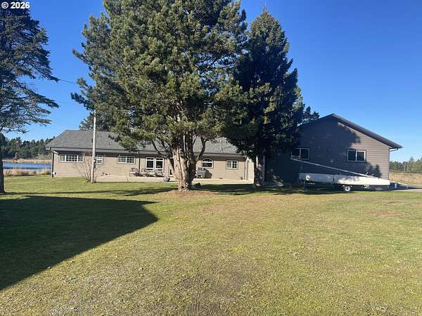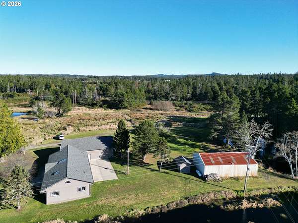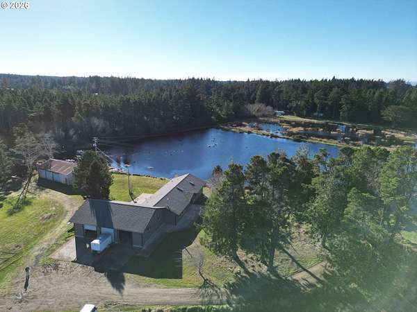 Est $4,405/moFar From the Madding Crowd 20 acre farm, just minutes to Bandon. Ponds and water galore. Intricate pumping system for former cranberry operation. Like New Custom Ranch Home. County Assessor says built in 1964, looks new. 2100 square foot contemporary interior with vaulted tongue-and-groove ceilings, recessed lighting and Rock fireplace. Top of the line appliances. Granite counters throughout. Attached 48 x 28 garage. Pump House. Detached 44 x 28 workshop/garage. This is a must see! If you like privacy and land, you will never want to leave.