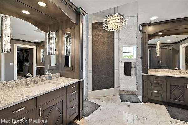 Welcome to this magnificent Dominick Tringali-designed estate, ideally situated on an impeccably manicured two-acre corner lot. Created for luxurious living and effortless entertaining, this exceptional residence offers an unparalleled lifestyle both inside and out. The dream kitchen is sure to impress, fully equipped with top-of-the-line cabinetry, premium appliances, and an expansive island with ample seating. Enjoy stunning views of the outdoor living space, creating the perfect setting for entertaining. The home boasts an easy flow from room to room, offering a blend of inviting and functional spaces. The private library provides an ideal spot for a home office or quiet escape. The great room features soaring ceilings, custom millwork, and panoramic views of the glistening pool. Take one of two staircases to the upper level, where you'll find the luxurious primary suite featuring a spa-inspired bathroom with dual vanities and a spacious walk-in closet. A beautifully appointed laundry room is thoughtfully designed with abundant counter space and storage. Each of the three additional bedrooms is generously sized and includes its own en-suite bath. The lower level is an entertainer's dream, complete with a game room, a large great room with a home theater system, a stylish bar, and a custom wine cellar. Step outside to your private backyard paradise, where summer dreams come to life. Your outdoor enjoyment begins with the expansive pool , two covered pergolas, and a custom firepit with built-in seating. Entertain in the outdoor kitchen, with a nearby pool house that includes a changing area and full bath for added convenience. The lush green space features a custom bocce ball court and plenty of open lawn for recreation. This extraordinary home is packed with features too numerous to list. Please refer to the attached feature sheet for full details. Schedule your private showing today and experience the ultimate in luxury living.